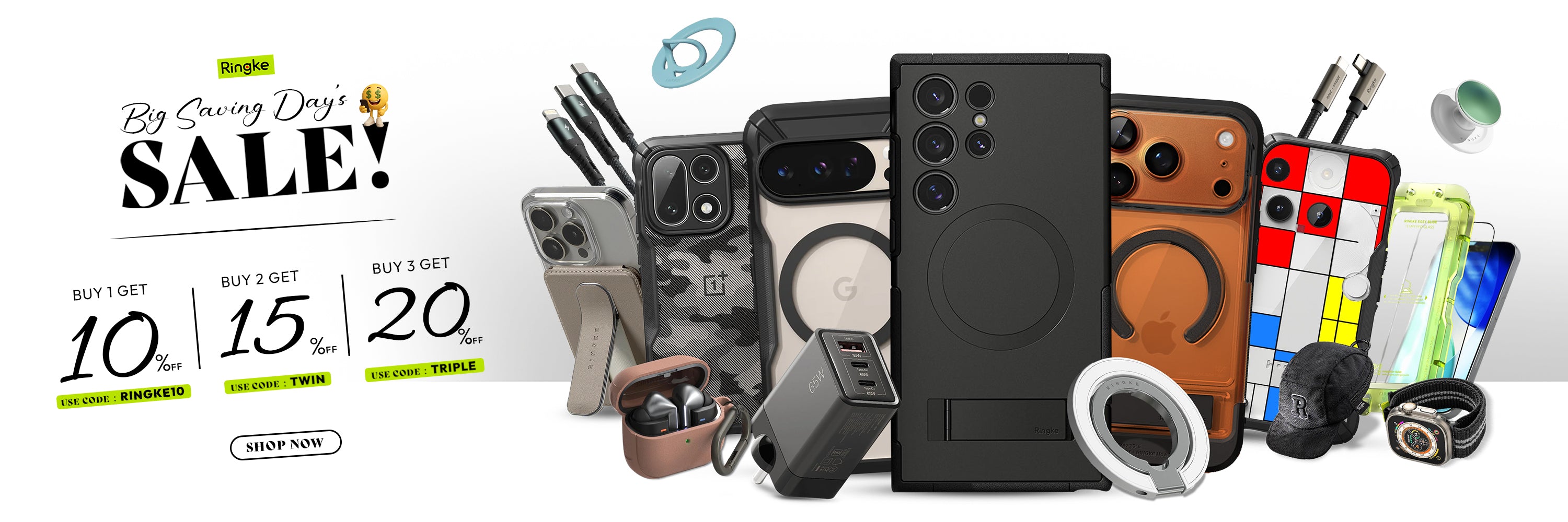 Ringke 65W GaN 3-Port Fast Charger (USB A + Type C + Type C) - Black (2 Years Warranty*)