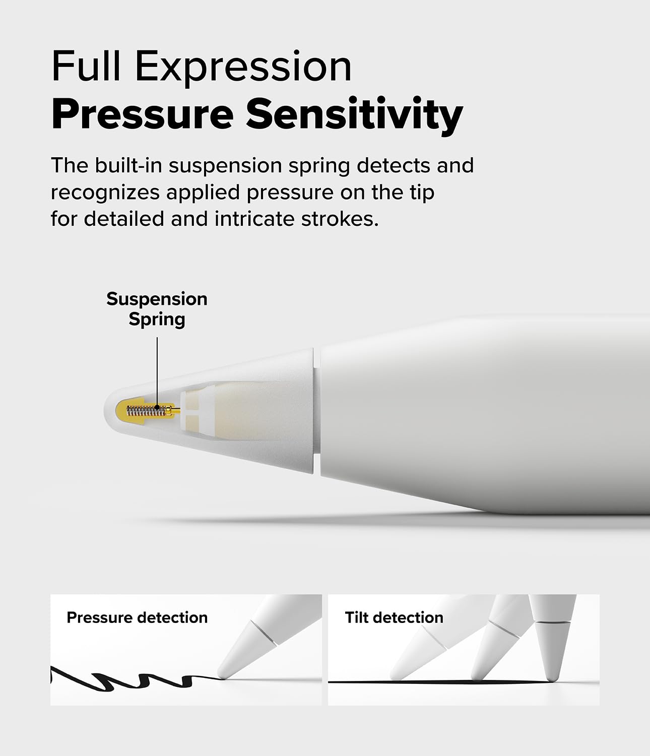 - Pressure sensitivity and tilt detection with built-in coil spring