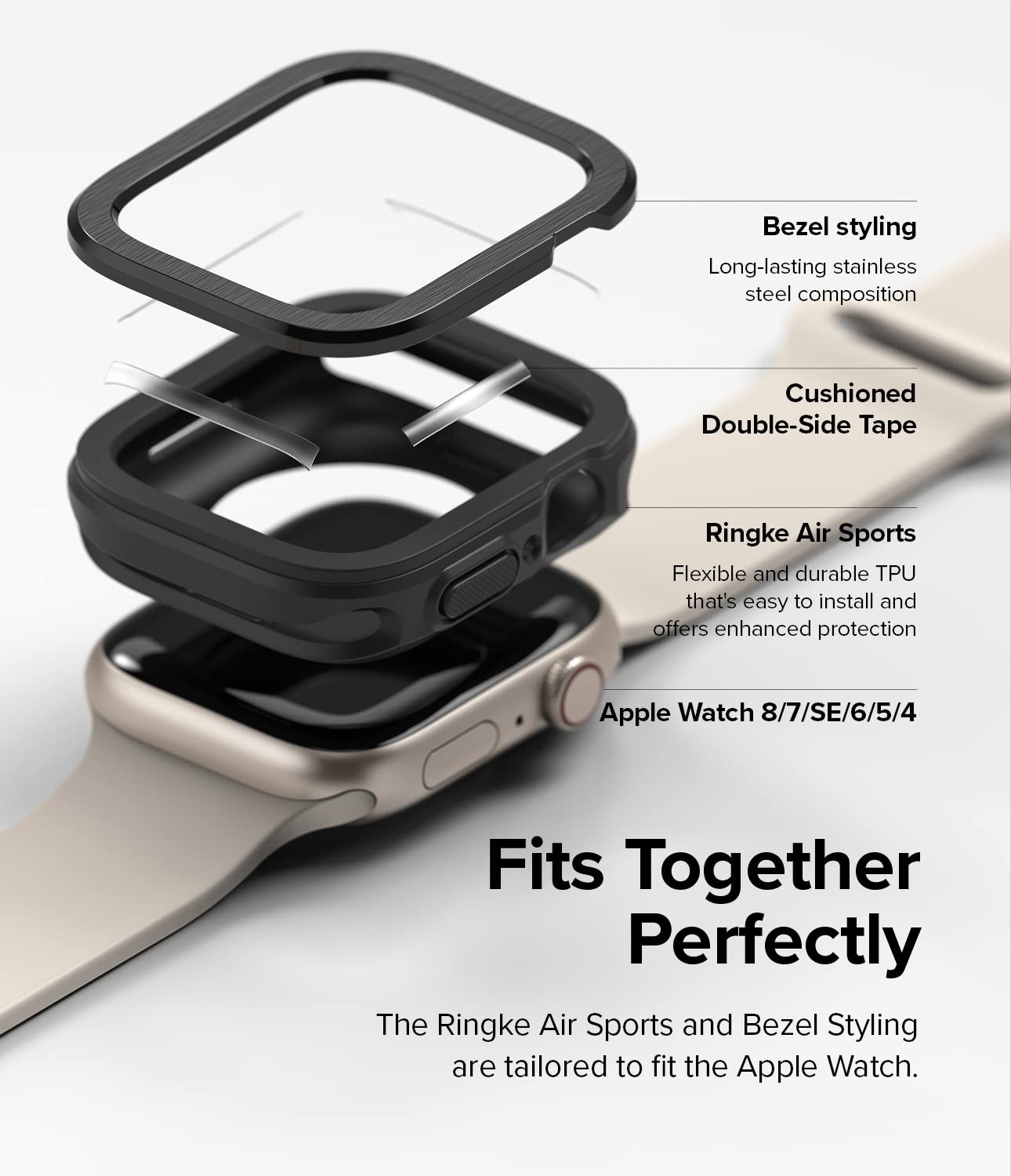 - Ringke Air Sports + Bezel Styling Combo Pack is compatible with Apple Watch Series 7 (41mm), SE / 6 / 5 / 4 (40mm)