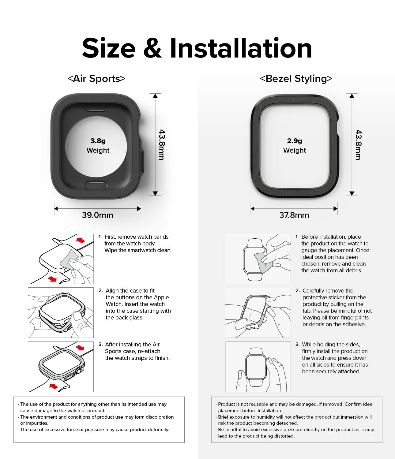 - The included Bezel Styling cannot be used alone. Please install it on the Air Sports case only