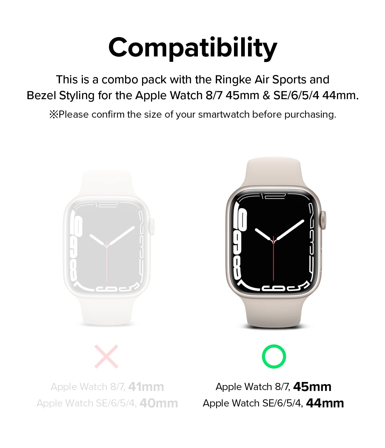 - Ringke Air Sports + Bezel Styling Combo Pack is compatible with Apple Watch Series 7 (45mm), SE / 6 / 5 / 4 (44mm)