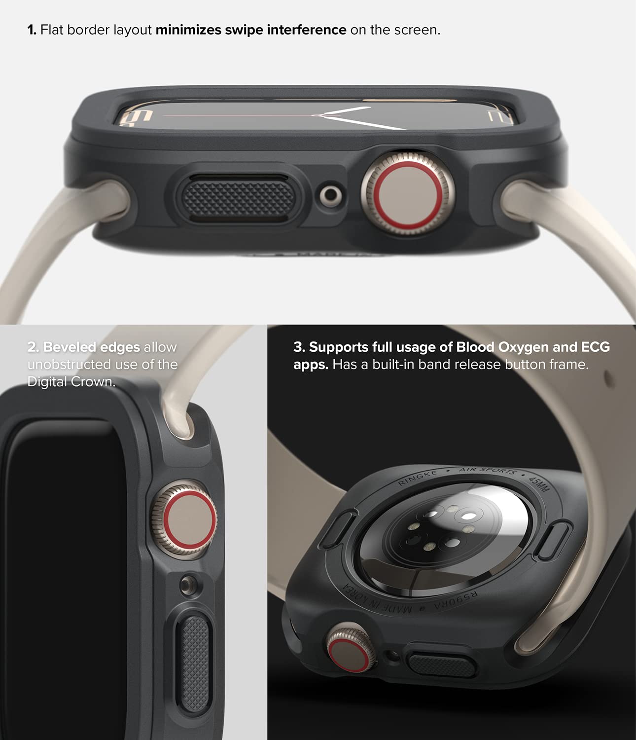 Safely maintain the watch's sleek profile with the naturally contouring features of the Ringke Air Sport smartwatch case.