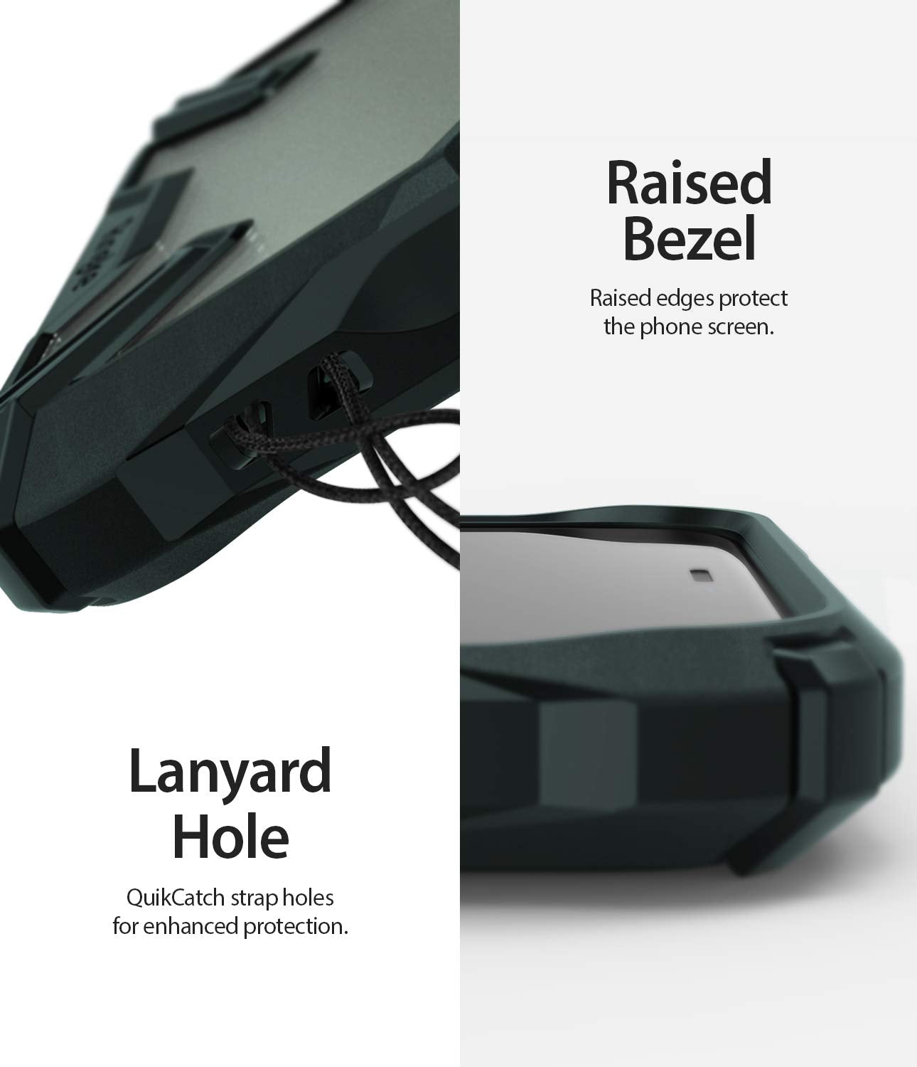 Durable thermoplastic urethane bumper protects all of the well-rounded sides and flawlessly fits all edges. The added addition of ridges in the TPU bumper adds a boosted grip control for comfortable handling. The raised front lip prevents your screen from touching a flat surface, and the rear camera also includes a tapered back lip to protect the lens.