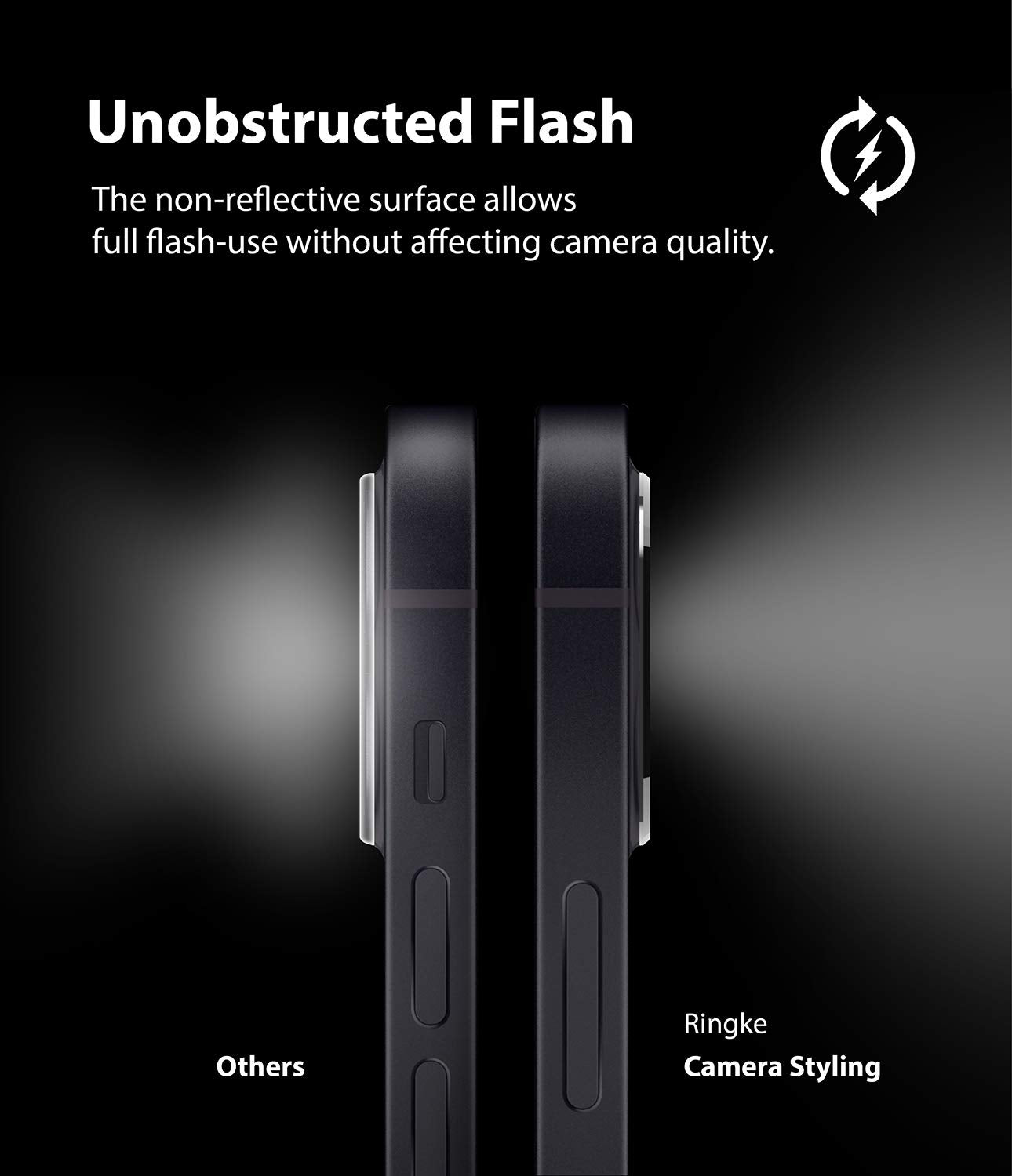 - Ringke Camera Styling is a metal frame that does not cover the camera lens.