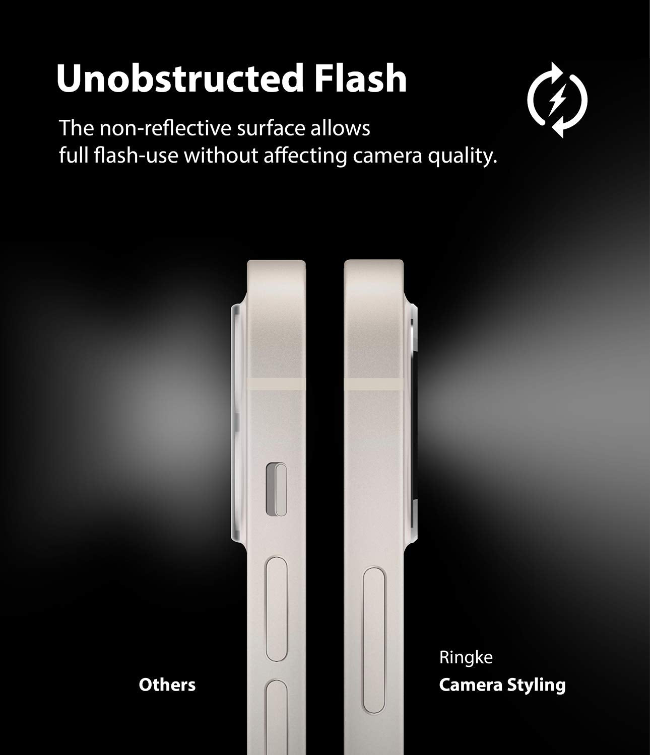 - Ringke Camera Styling is a metal frame that does not cover the camera lens.