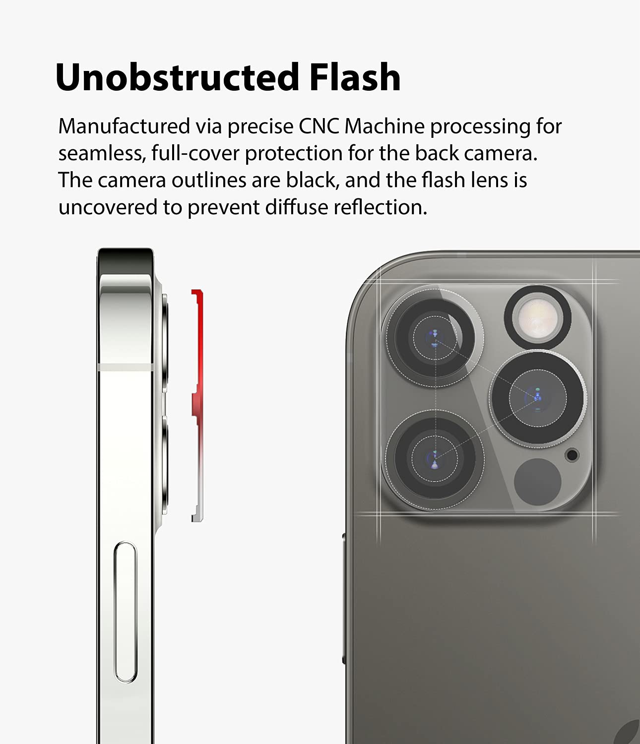 The Ringke iPhone 12 Pro Max Camera Protector Glass’s see-through design is perfect for any color phone to retain the iPhone's natural and modern look.