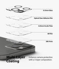 Protect your iPhone's rear camera against scratches and drops with the ultra-thin, full-cover Ringke Camera Protector Glass.The full-coverage protector is layered with five high-quality materials for maximum strength and performance. The solid glass surface, OCA adhesive, acrylic plate, AB film, and clear adhesive base compound constructs a slim and lightweight camera shell that also provides shatter-resistant safeguard and bubble-free installation.
