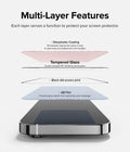 Unlike edge-only adhesive screen protectors that quickly fall off, Ringke Full Cover iPhone 14 Pro Tempered Glass screen protector applies a super clear adhesive on the full expanse of the glass. This ensures the screen protector stays on for the full duration of your device’s lifetime without bubbles or lifting.