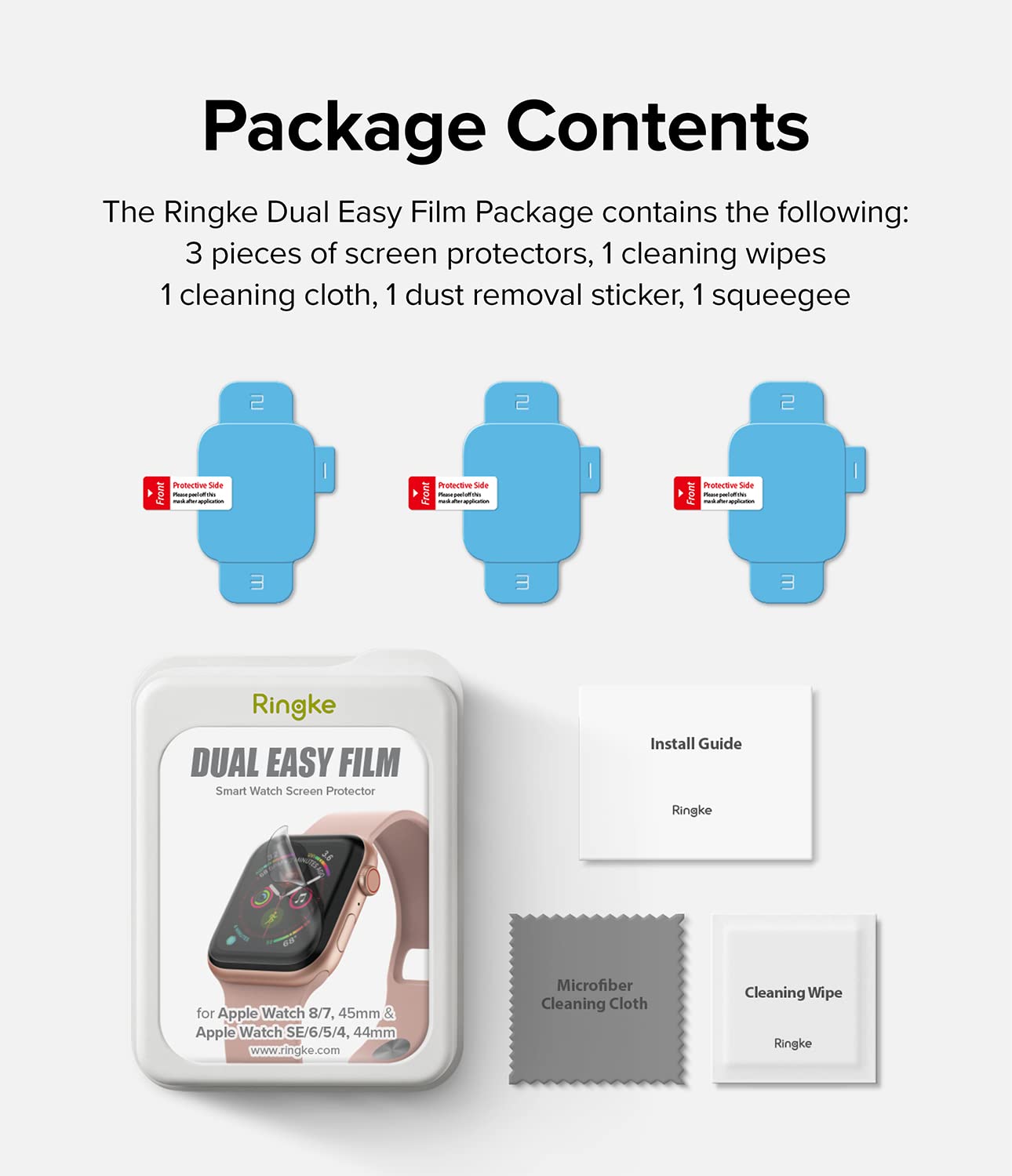 Apple Watch 8/7/6/5/SE 45mm, 44mm Screen Protector Dual Easy Film [3 Pack]