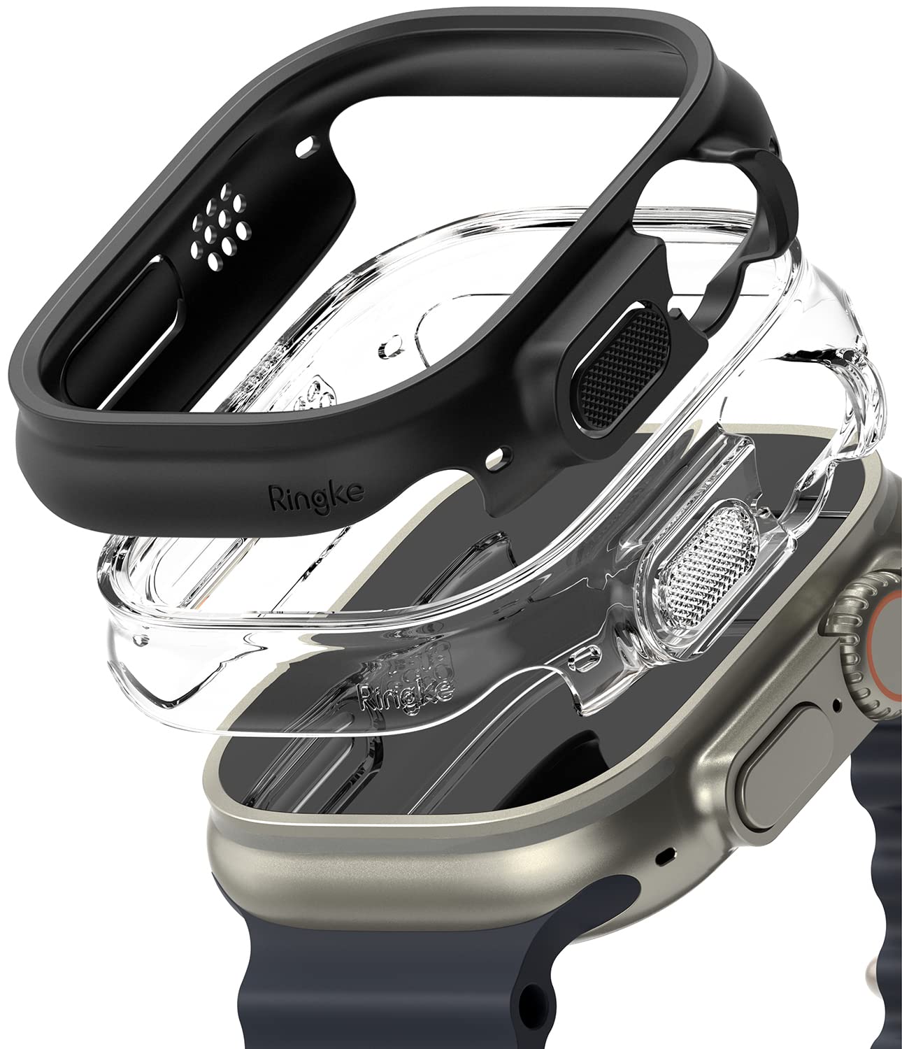 Apple Watch Ultra 2/1 49mm, Bezel Frame Only | Slim case - Clear & Titanium Black [2 Pack]