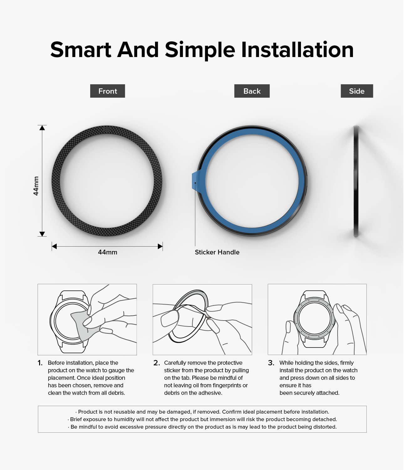 Smooth Rotation, Sound Protection The strong adhesive ensures a safe and easy attachment of the Bezel Styling to your watch's rotating bezel without hurting the watch. This simple connection keeps the natural revolution of the watch face smooth and effortless. You can even cover up those unsightly scratches and dents with this stylish accessory. It will even help prevent the formation of new scrapes on your smartwatch.