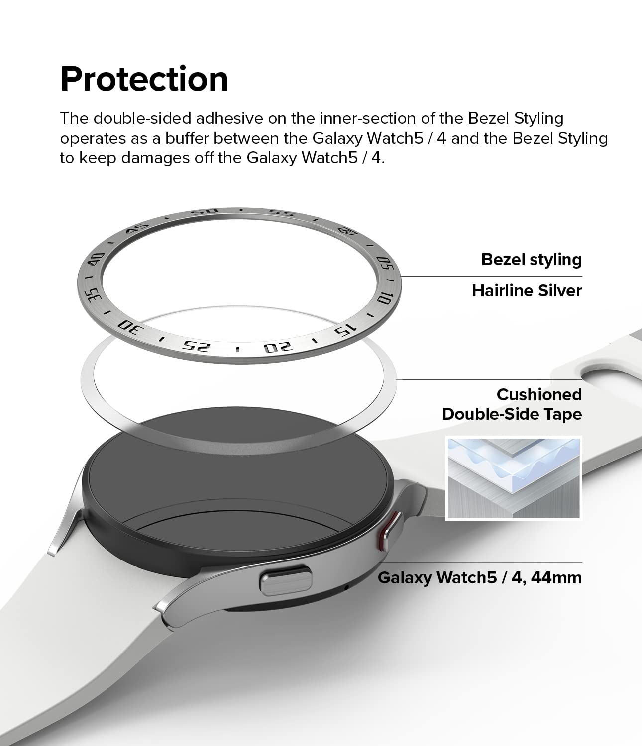 Smooth Rotation, Sound Protection The strong adhesive ensures a safe and easy attachment of the Bezel Styling to your watch's rotating bezel without hurting the watch. This simple connection keeps the natural revolution of the watch face smooth and effortless. You can even cover up those unsightly scratches and dents with this stylish accessory. It will even help prevent the formation of new scrapes on your smartwatch.