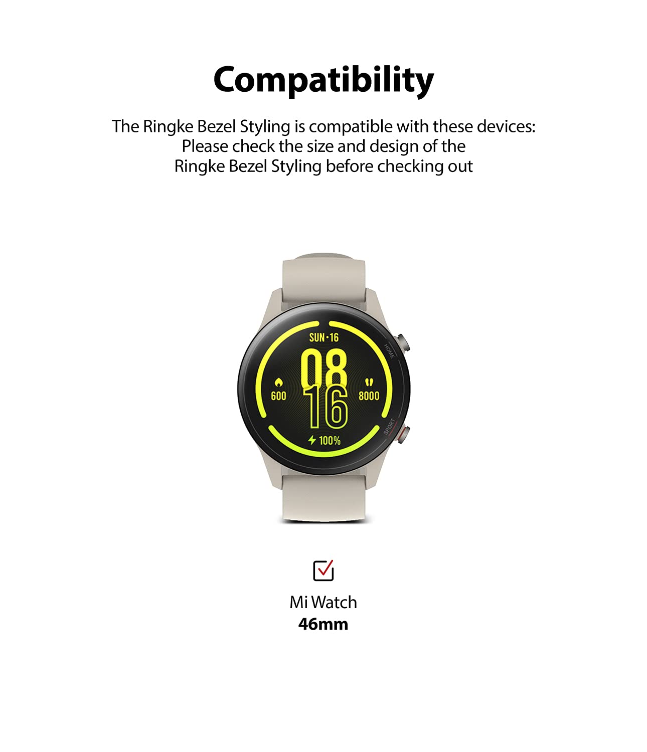 Bezel Styling Compatible with Xiaomi Mi Watch- [46] [Stainless Steel]-Silver [46-01]