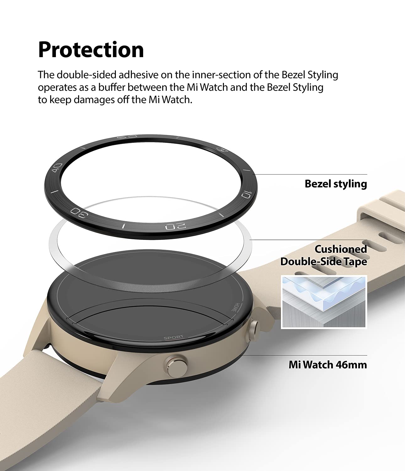 Smooth Rotation, Sound Protection The strong adhesive ensures a safe and easy attachment of the Bezel Styling to your watch's rotating bezel without hurting the watch. This simple connection keeps the natural revolution of the watch face smooth and effortless. You can even cover up those unsightly scratches and dents with this stylish accessory. It will even help prevent the formation of new scrapes on your smartwatch.