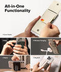 Upgrade your phone with the Ringke Slide Grip Magnetic – a versatile 3-in-1 MagSafe accessory that functions as a wallet, phone grip, and adjustable stand. Made from premium PU leather in an elegant Dark Green finish, it securely holds your cards while offering a comfortable grip for one-handed use. The built-in stand adds hands-free convenience, and the strong magnetic attachment ensures a stable connection to your MagSafe-compatible device.