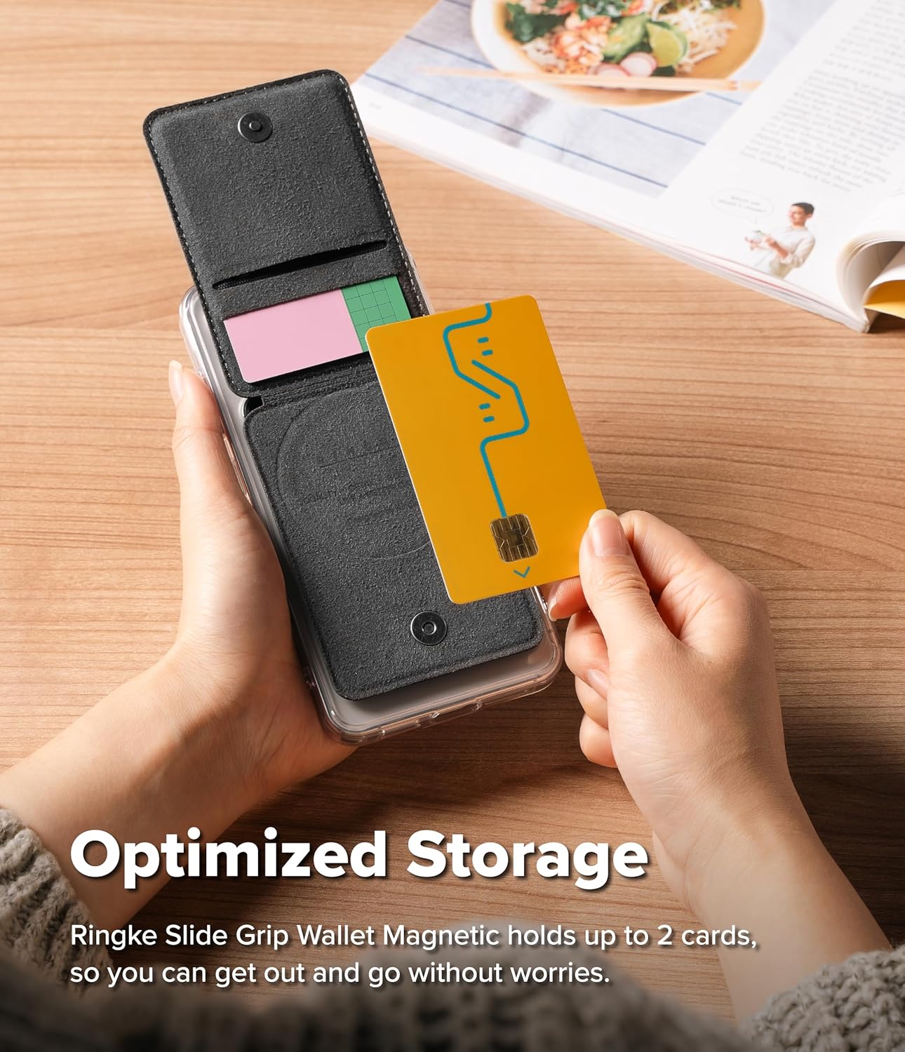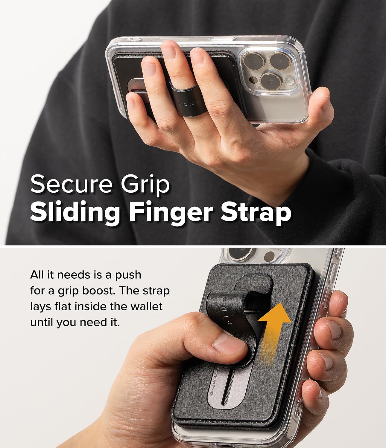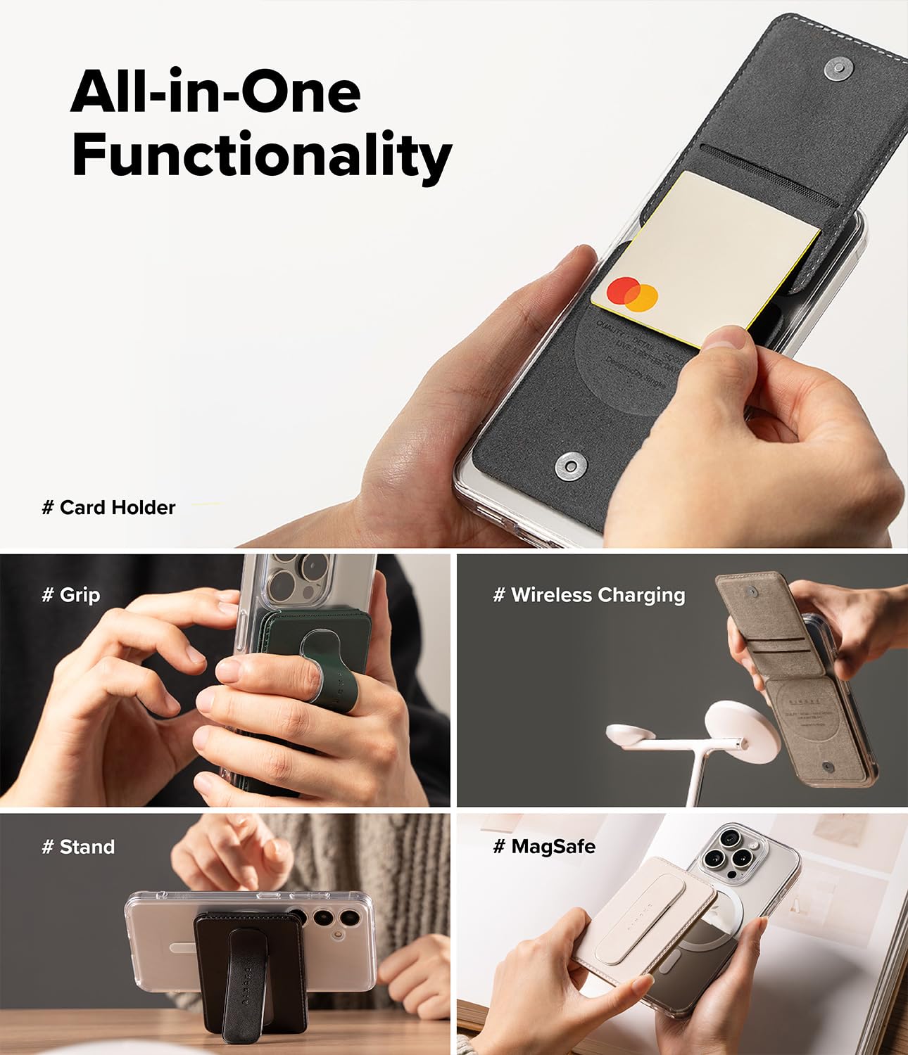 Upgrade your phone with the Ringke Slide Grip Magnetic – a versatile 3-in-1 MagSafe accessory that functions as a wallet, phone grip, and adjustable stand. Made from premium PU leather in an elegant Dark Green finish, it securely holds your cards while offering a comfortable grip for one-handed use. The built-in stand adds hands-free convenience, and the strong magnetic attachment ensures a stable connection to your MagSafe-compatible device.