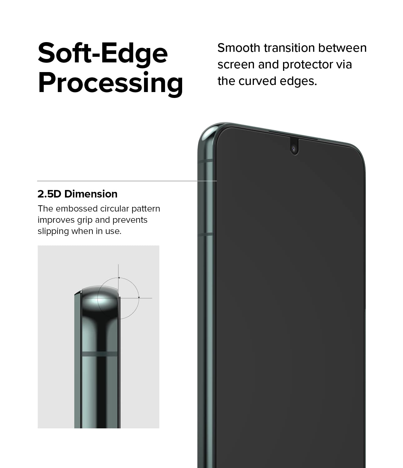 - 2.5-dimensional edge - Sleek curvature aligns screen protector surface with device screen