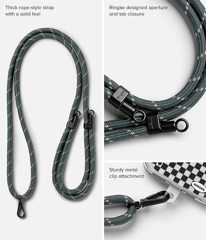 - Ringke-designed universal smartphone tether paired with our durable, rope-style neck strap.