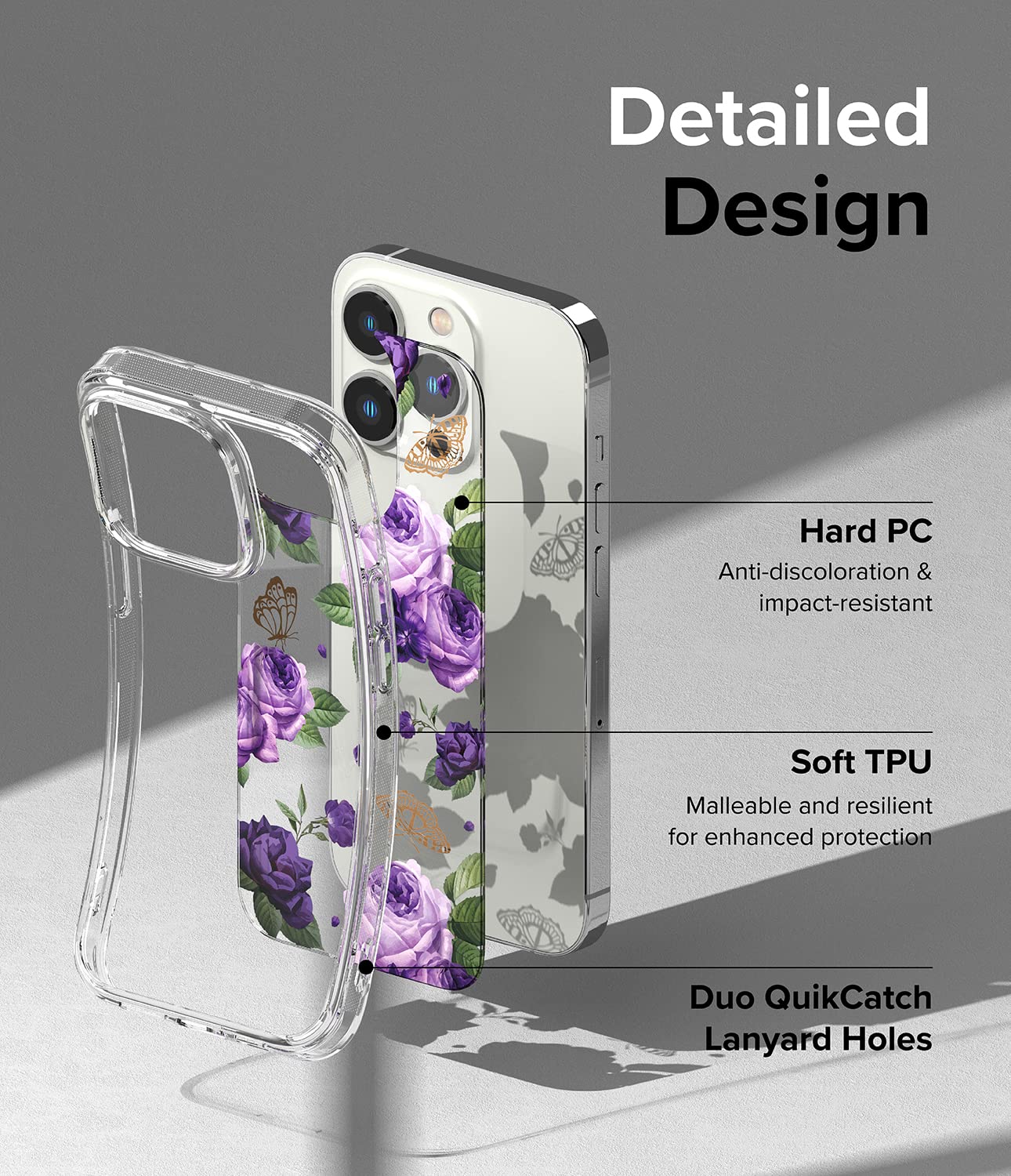 Apple iPhone 14 Pro Back Cover Case | Fusion Design - Purple Rose