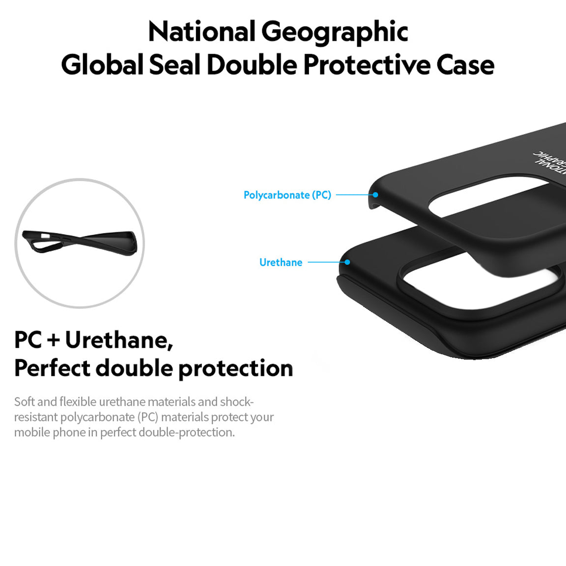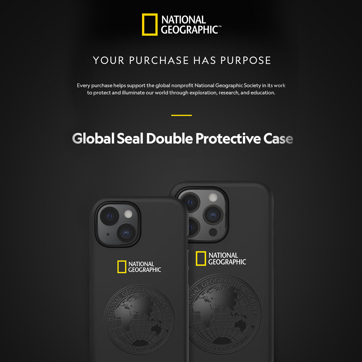 Nat Geo iPhone 15 Back Cover Case | Global Seal Double Protective - Black