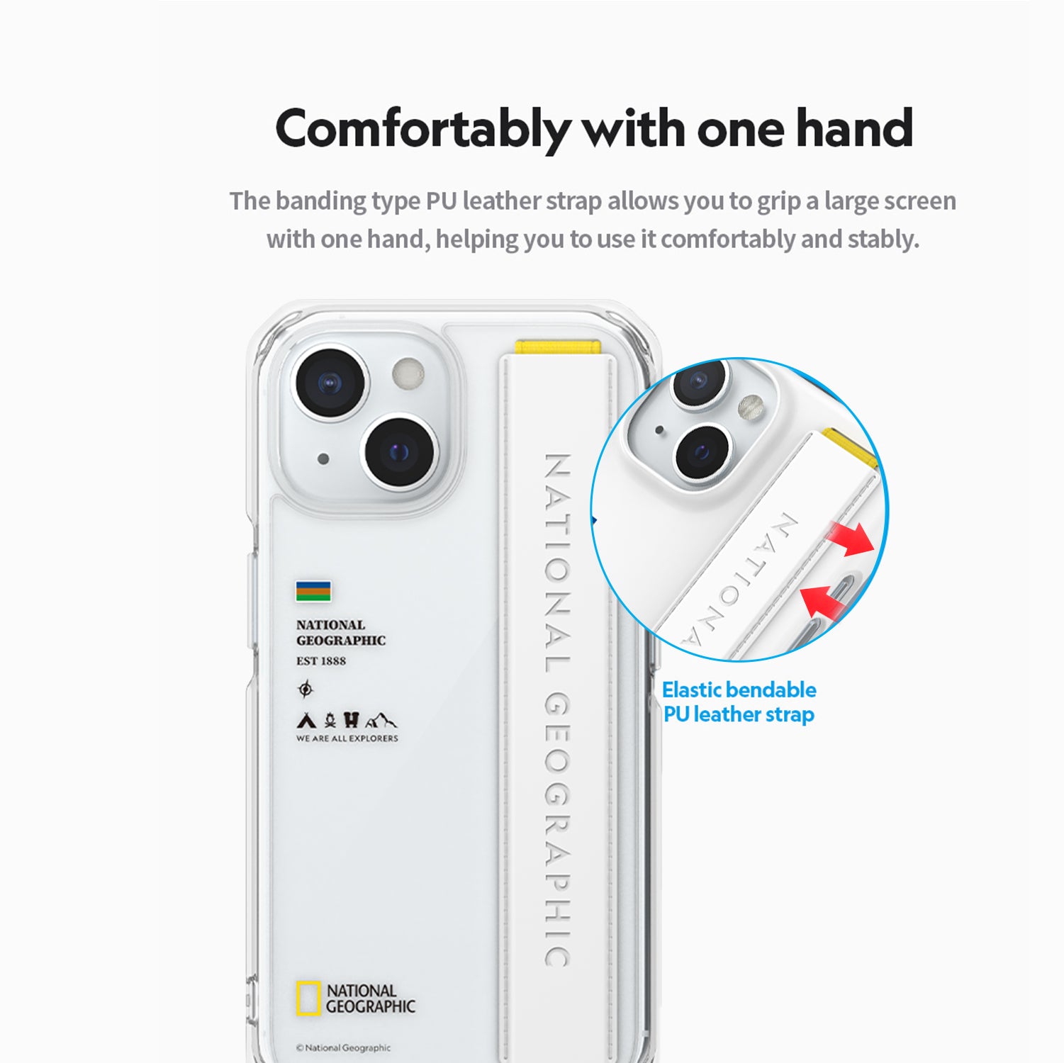 Nat Geo iPhone 15 Back Cover Case | Strap - Clear White
