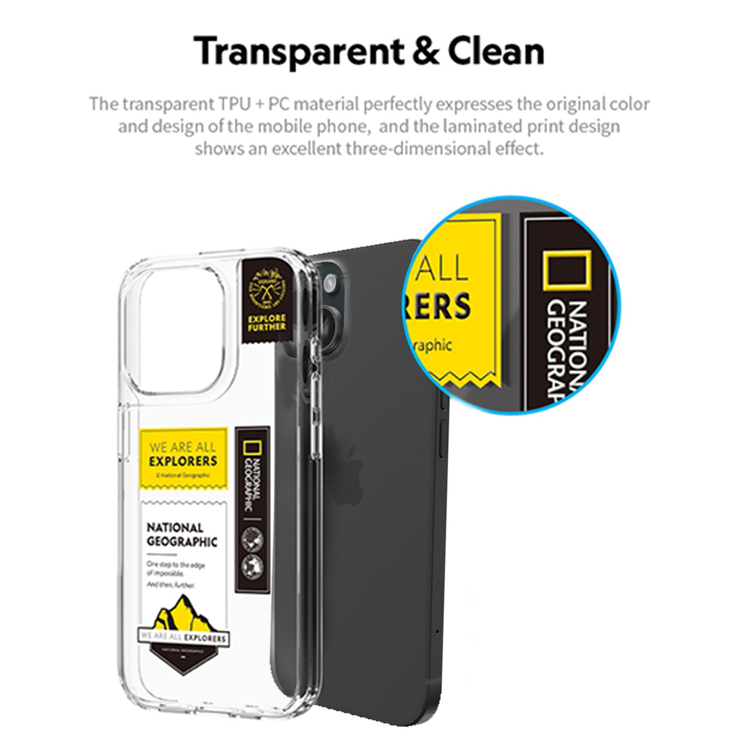 Nat Geo iPhone 15 Back Cover Case | Wappen Clear - Mountain
