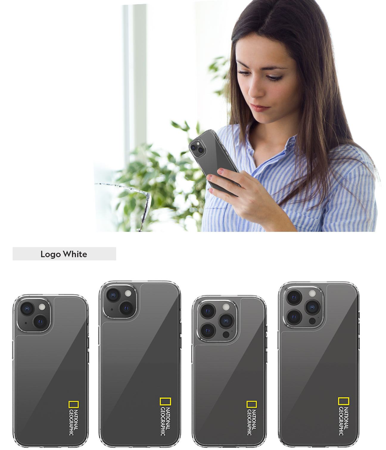 Nat Geo iPhone 15 Plus Back Cover Case | Crystal Clear - White Logo