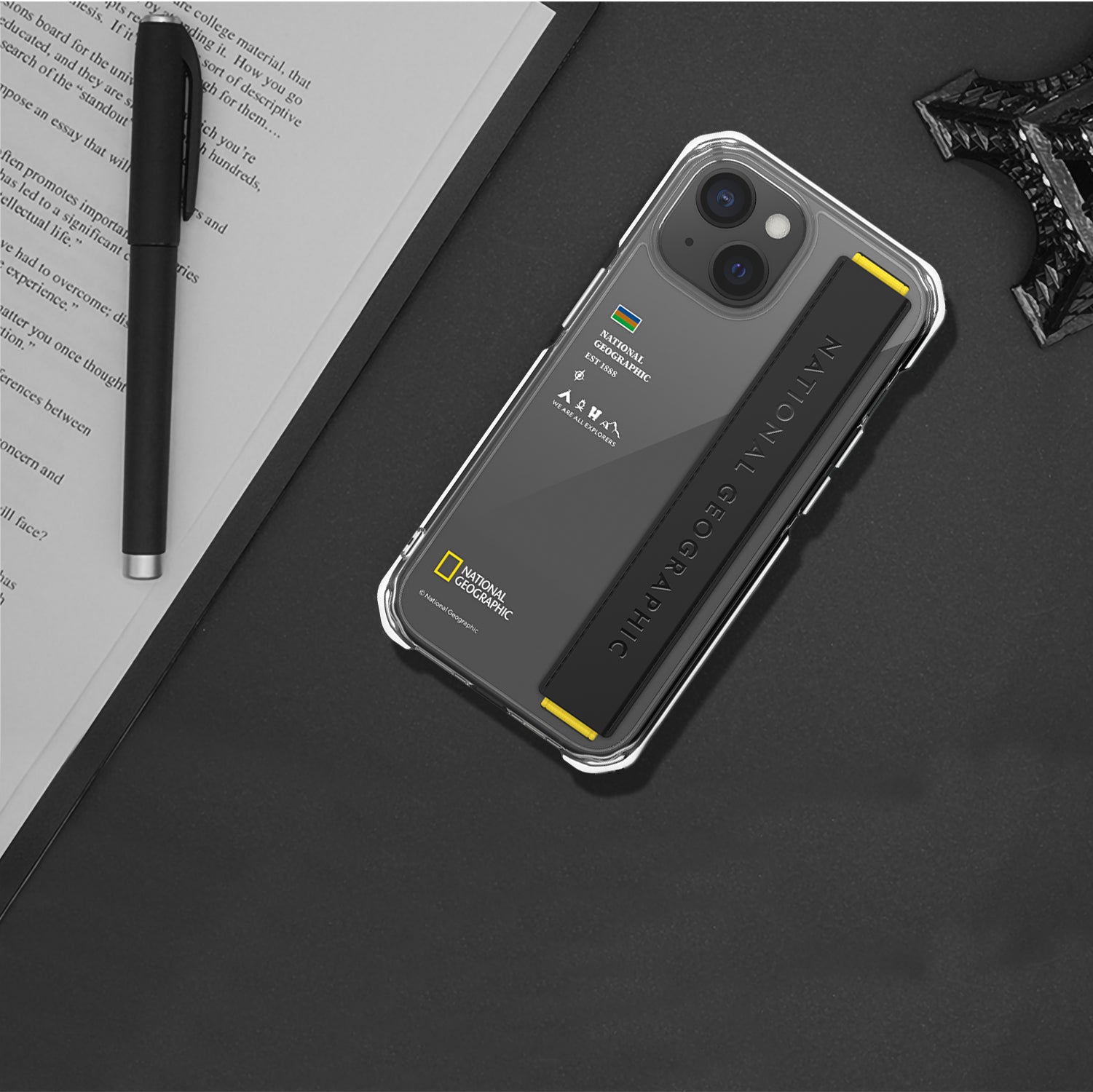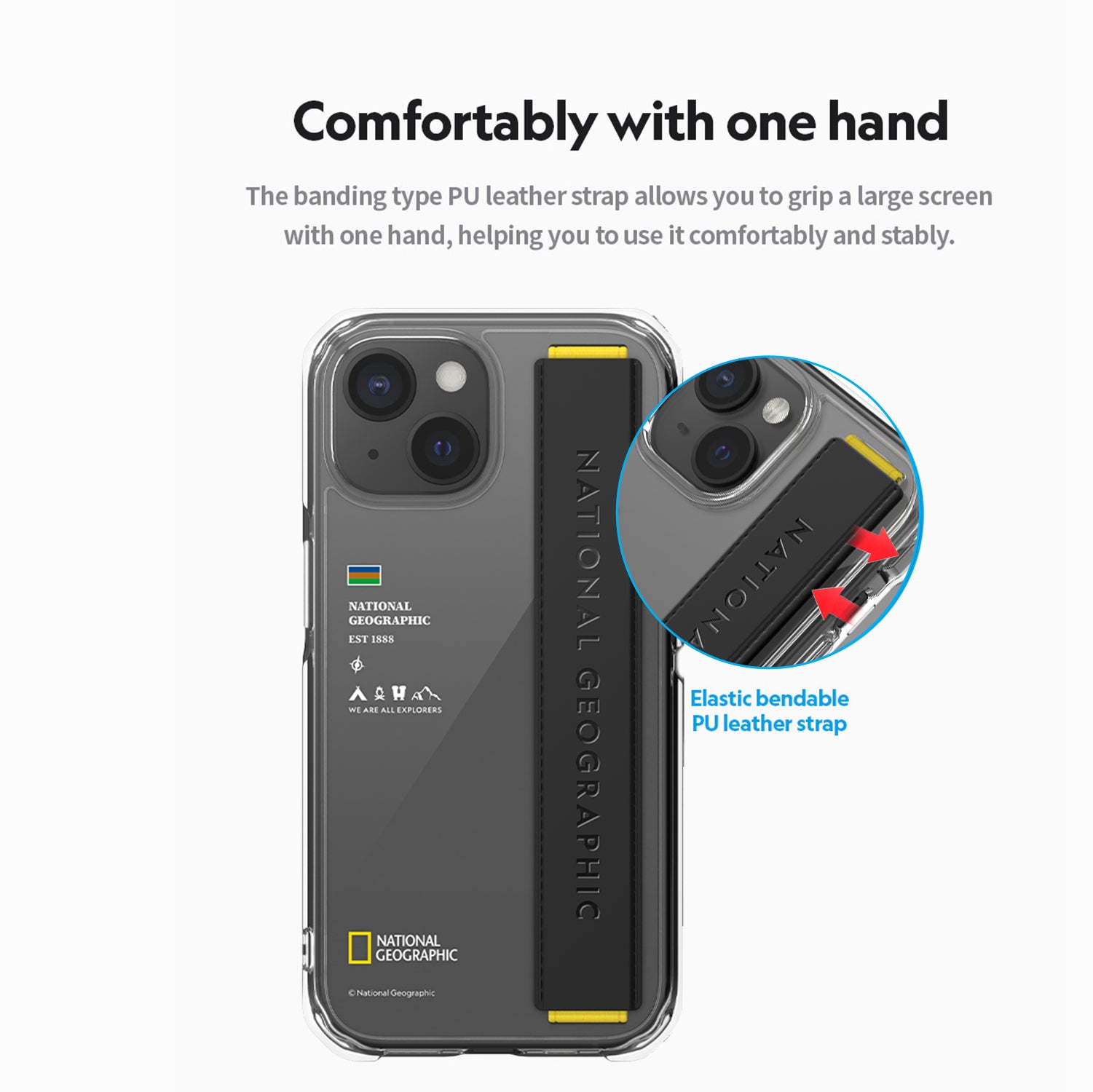 Nat Geo iPhone 15 Plus Back Cover Case | Strap - Clear Black