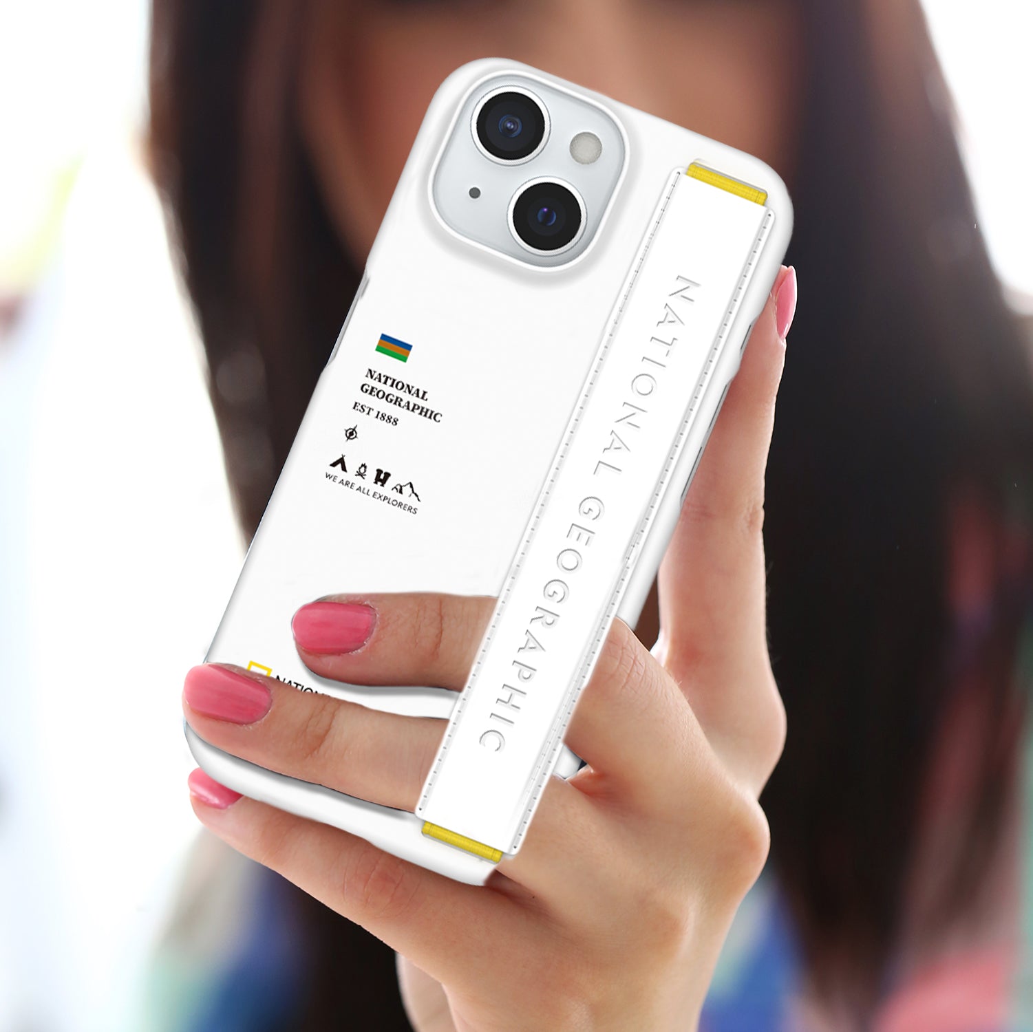 Nat Geo iPhone 15 Plus Back Cover Case | Strap - White