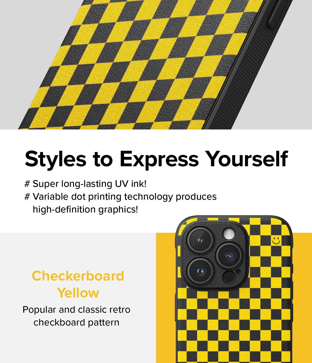iPhone 15 Pro Back Cover case Onyx Design - Checkerboard Yellow