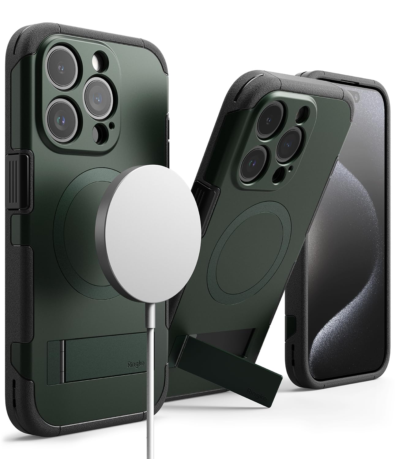 - Heavy-duty, rugged protection case compatible with magnet and built-in kickstand for the iPhone 15 Pro Max only.