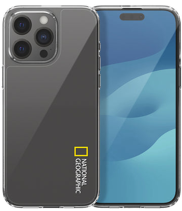 Nat Geo iPhone 15 Pro Back Cover Case | Crystal Clear - White Logo