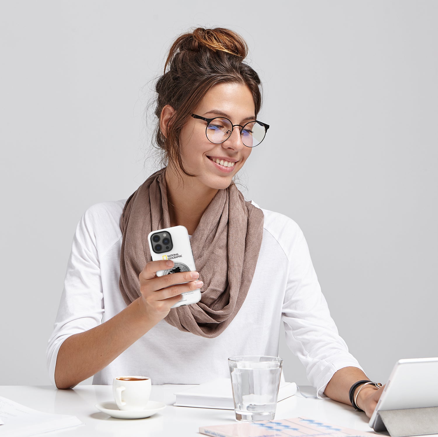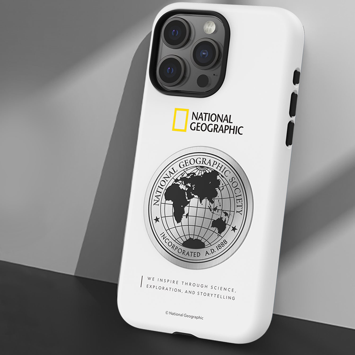 Nat Geo iPhone 15 Pro Back Cover Case | Metal Deco Hard Shell - White