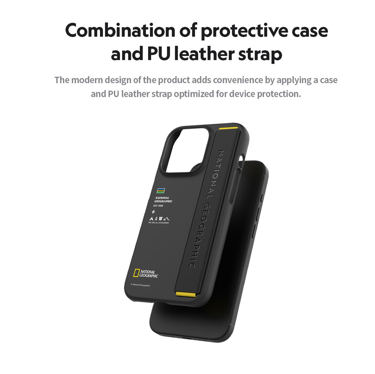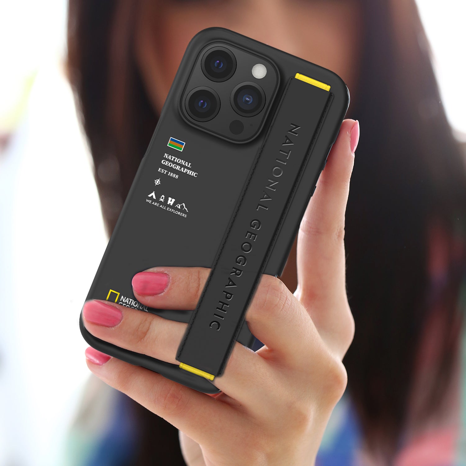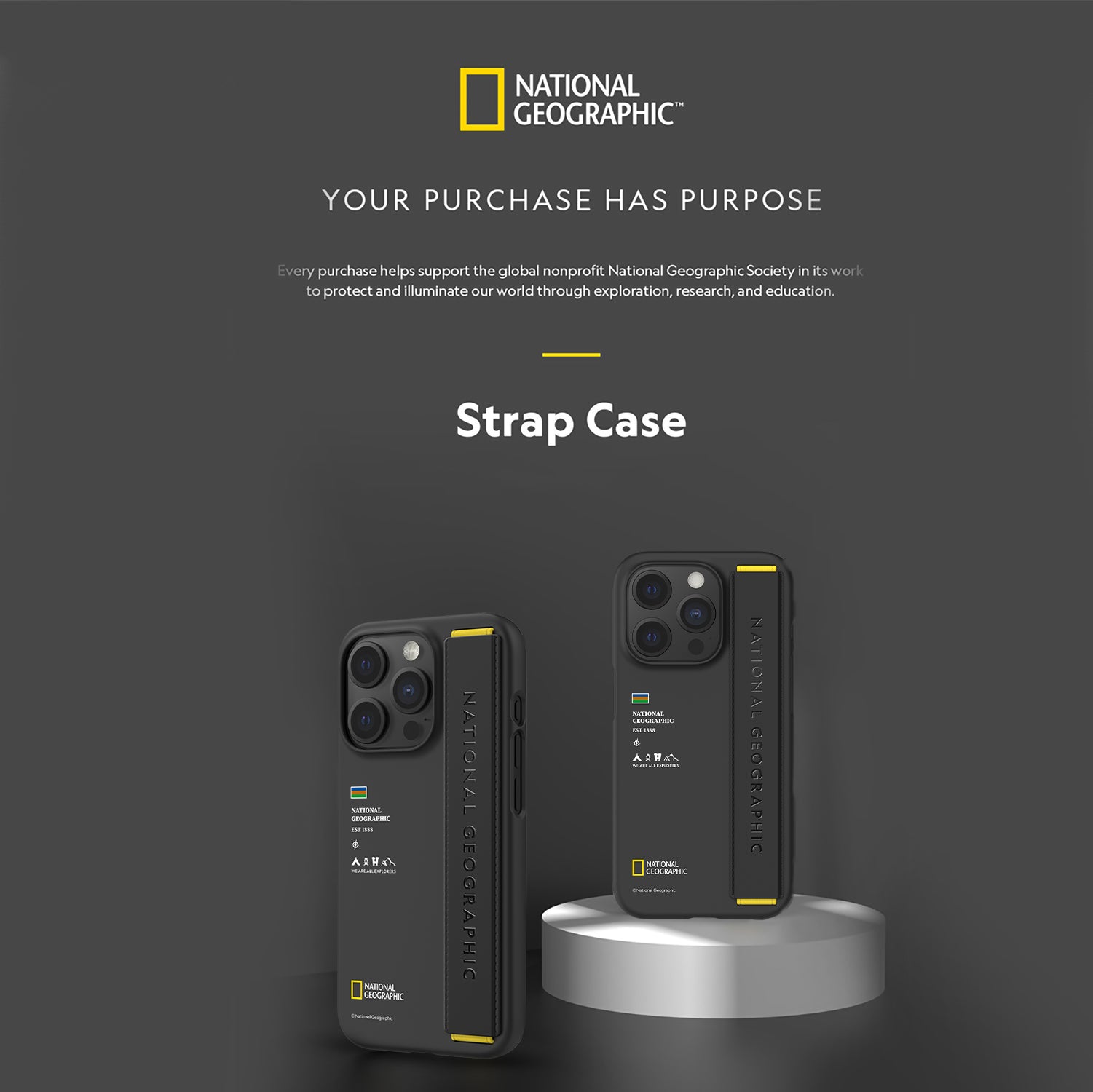 Nat Geo iPhone 15 Pro Back Cover Case | Strap - Black