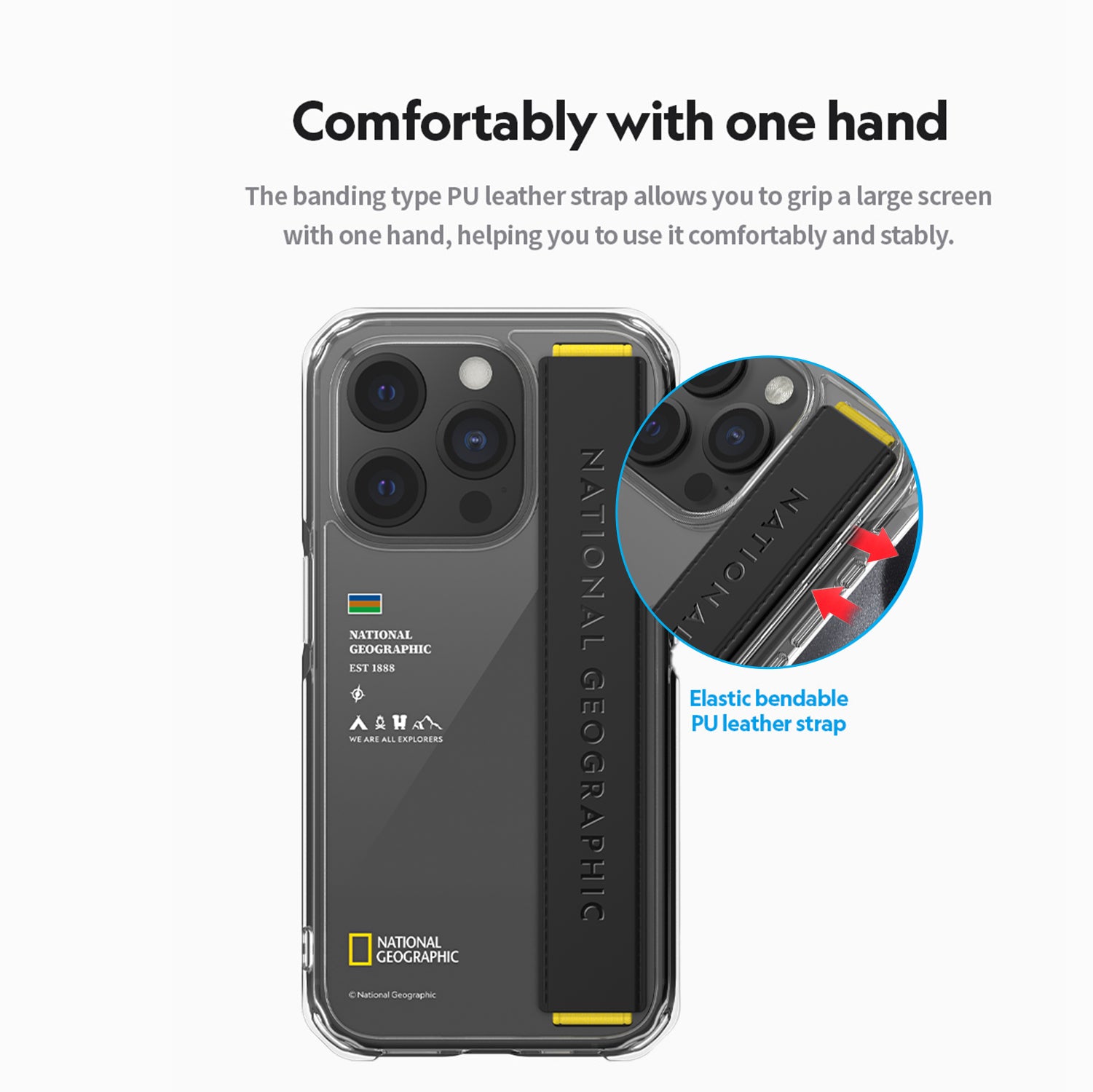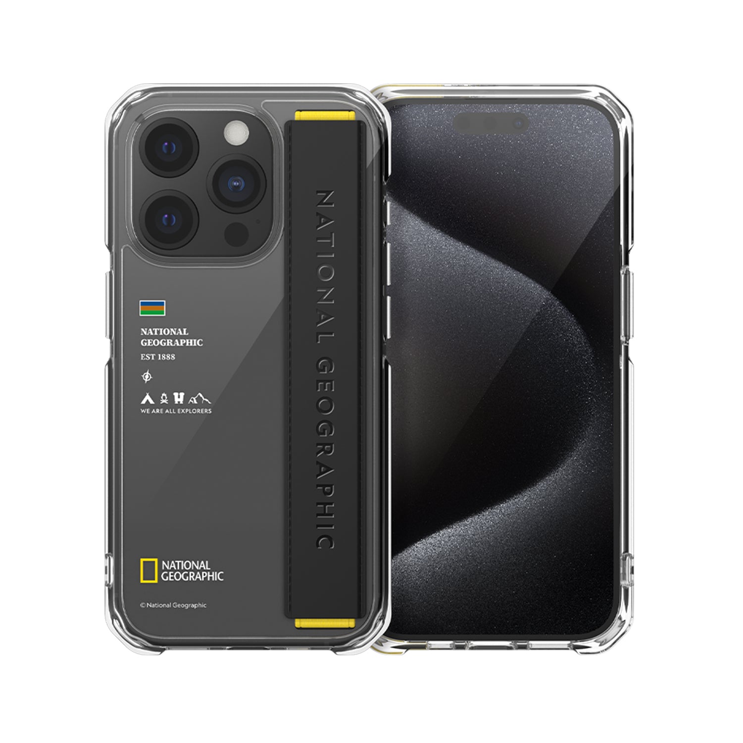 Nat Geo iPhone 15 Pro Back Cover Case | Strap - Clear Black
