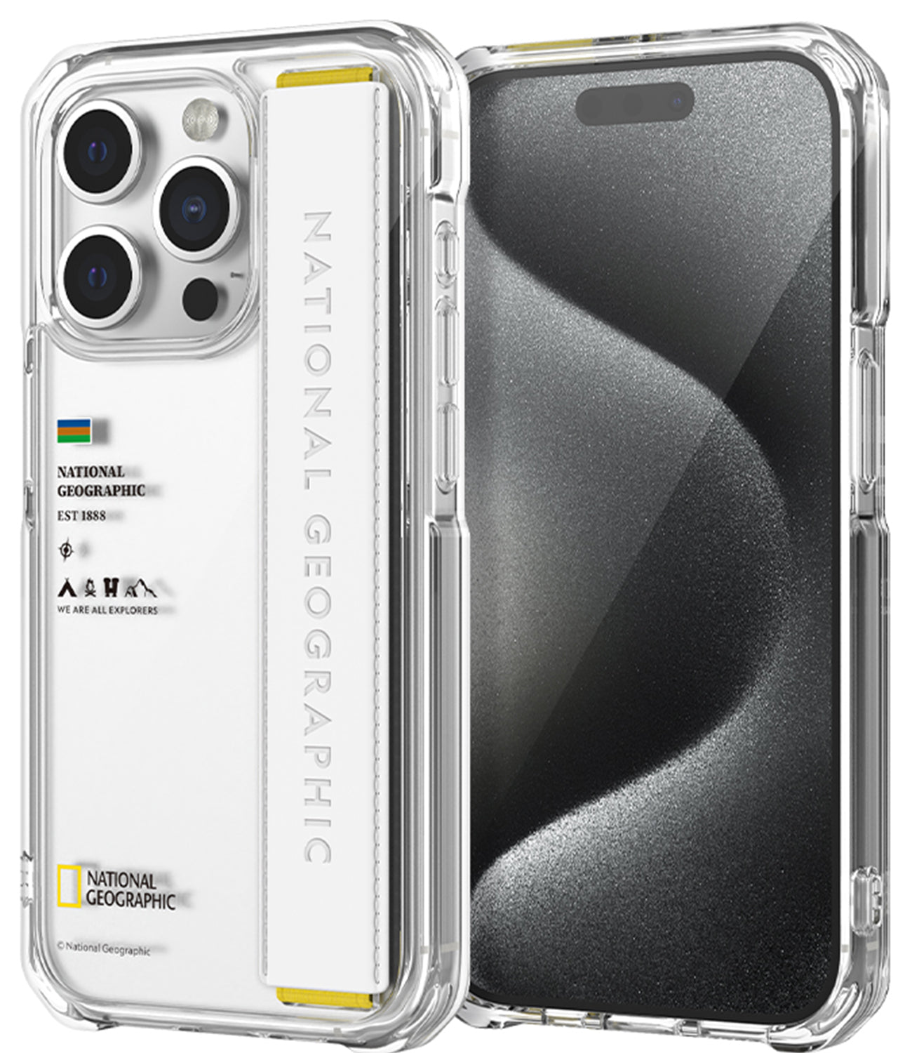 Nat Geo iPhone 15 Pro Back Cover Case | Strap - Clear White