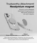- Minimalist clear case with a built-in magnetic ring to securely attach MagSafe compatible accessories and charger.