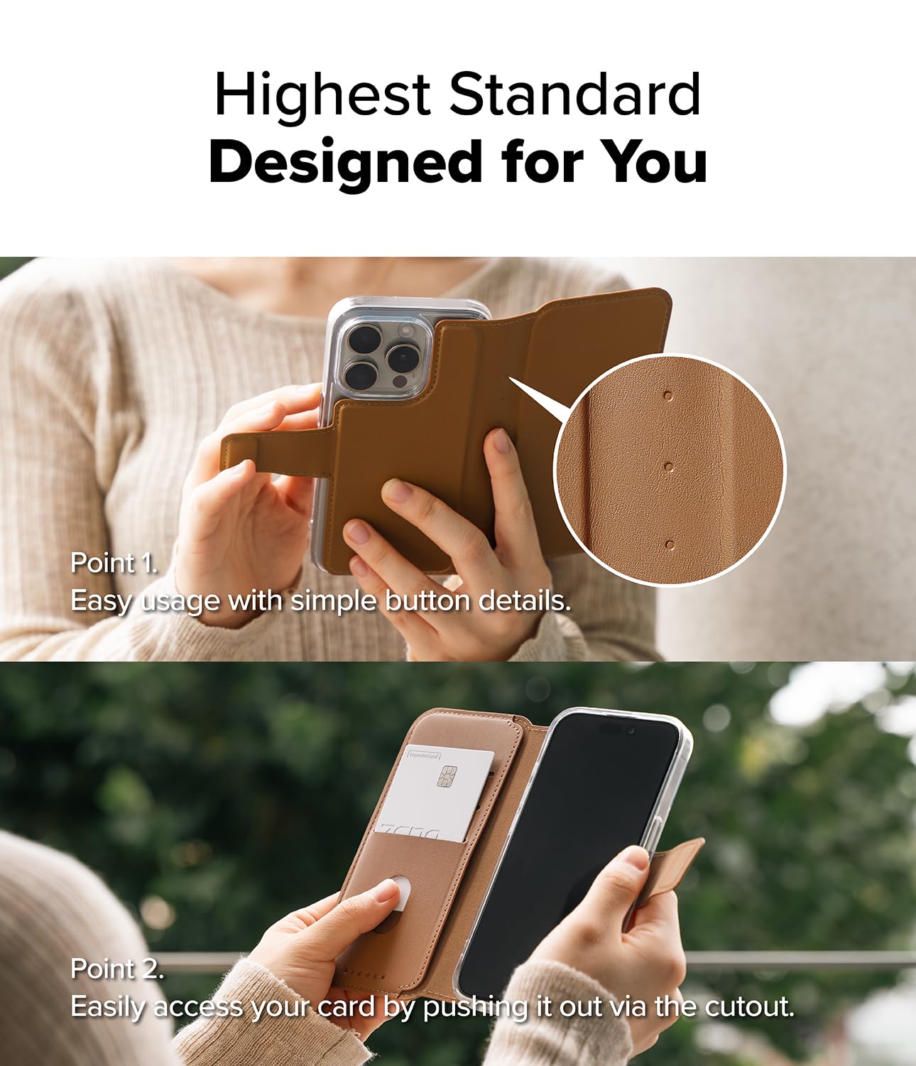 - Detachable folio wallet cover for MagSafe-compatible cases