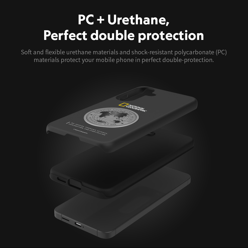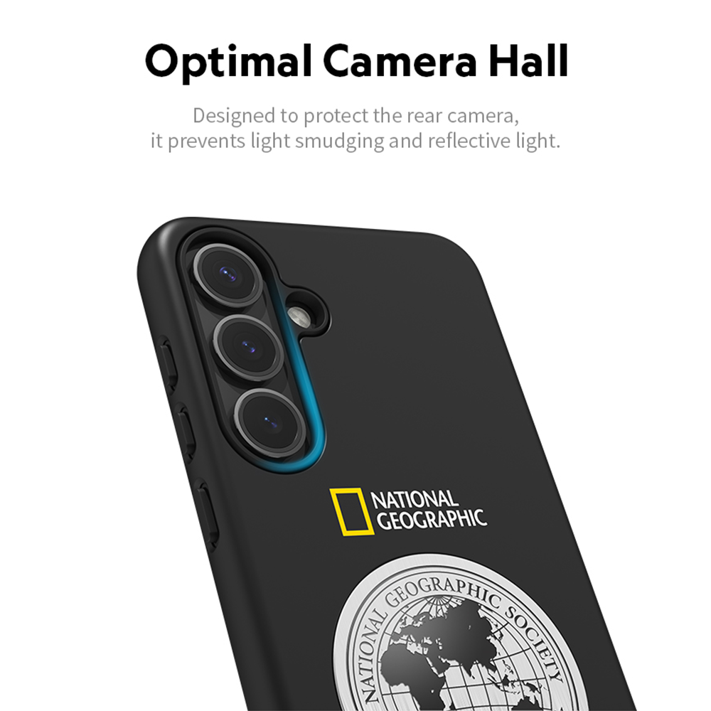 Nat Geo Galaxy S25 Back Cover Case | Metal Deco Hard Shell Case - Black