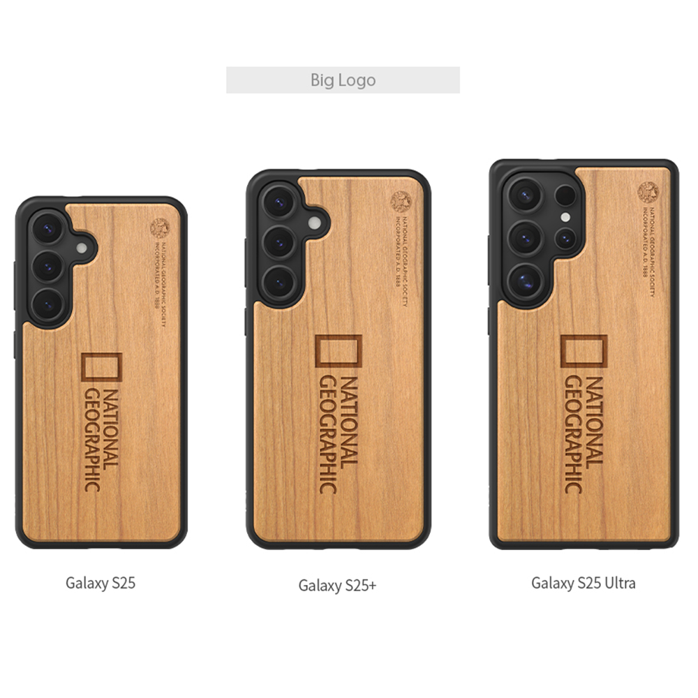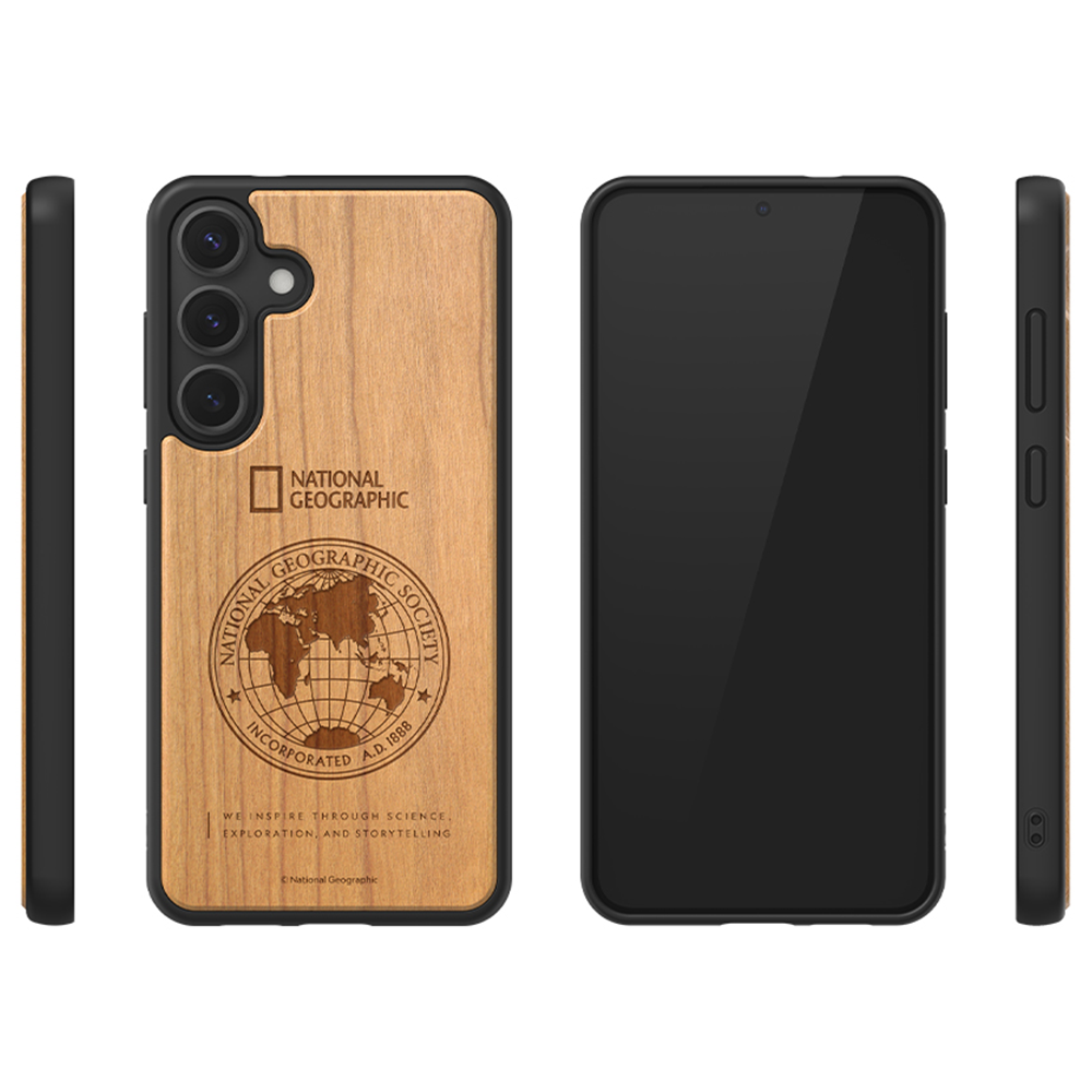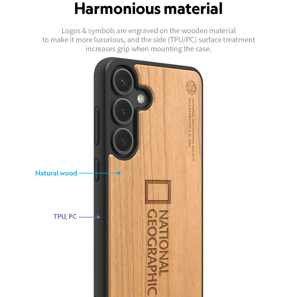 Nat Geo Galaxy S25 Back Cover Case | Nature Wood Case V3 (Big Logo & Global Seal) - Cherrywood