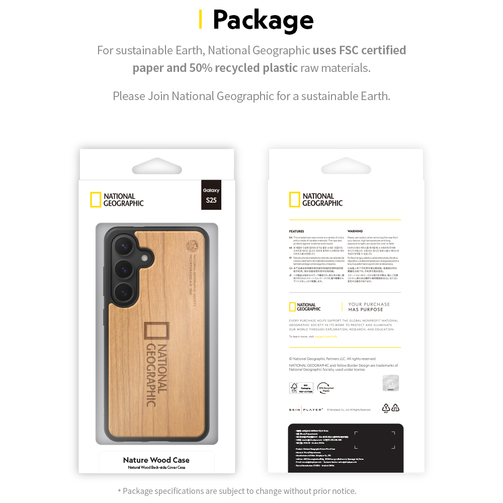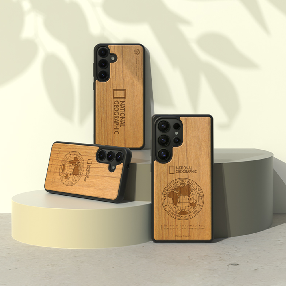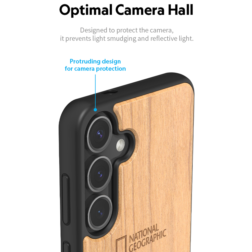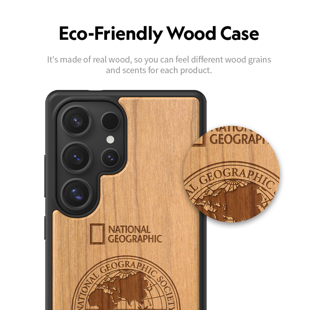 Nat Geo Galaxy S25 Back Cover Case | Nature Wood Case V3 (Big Logo & Global Seal) - Cherrywood