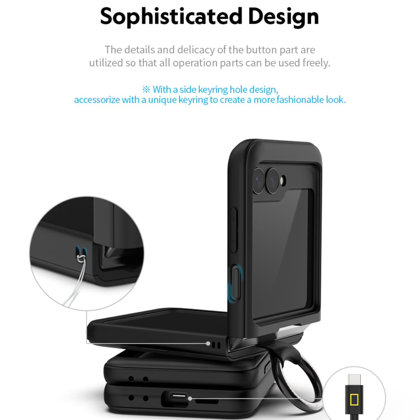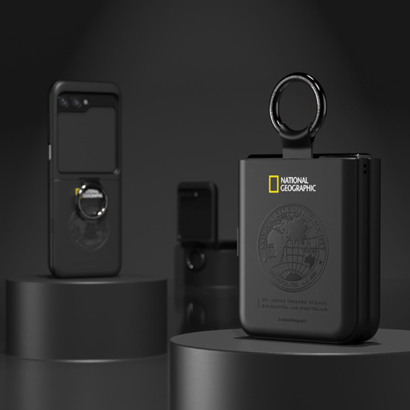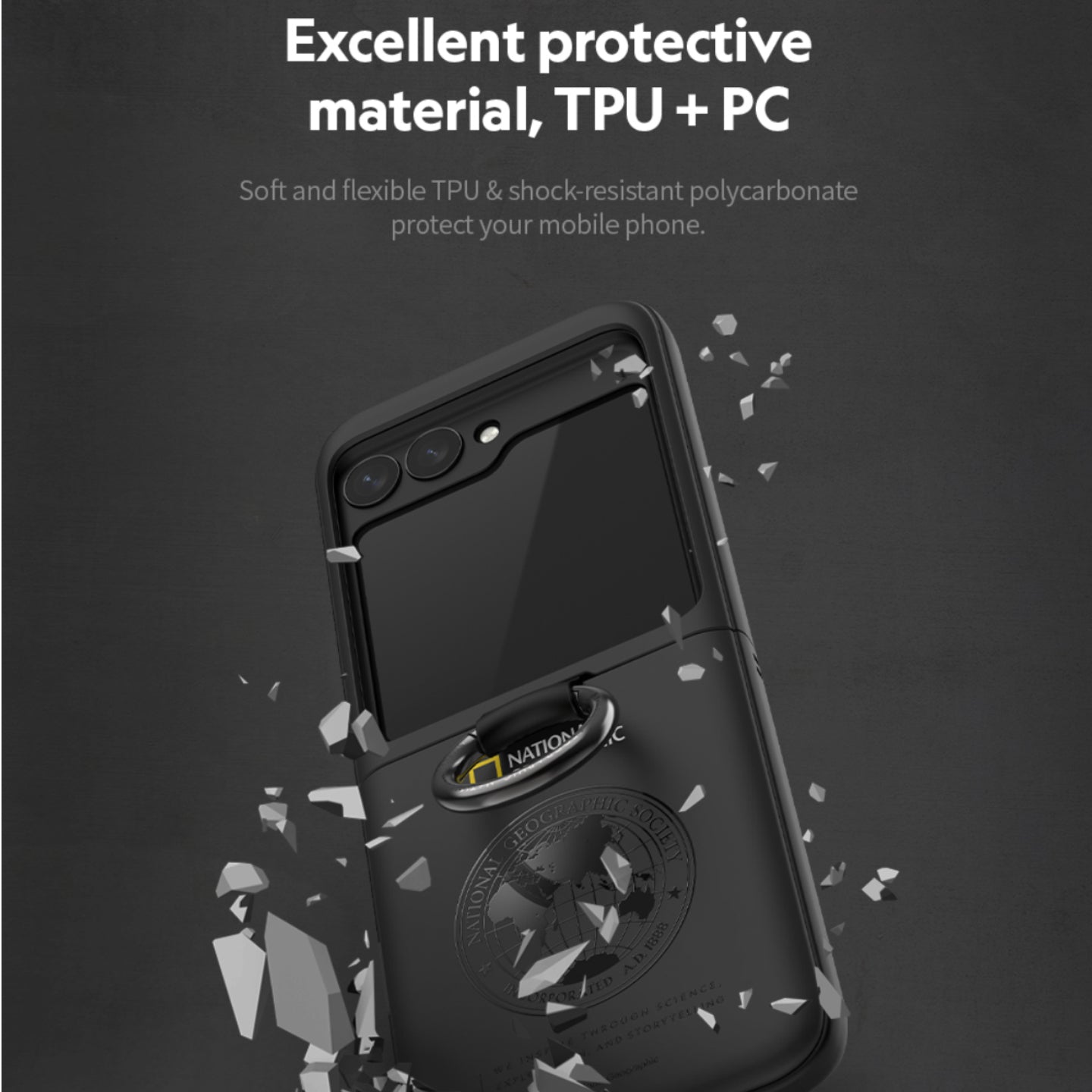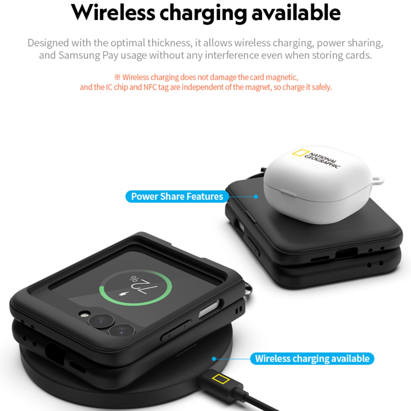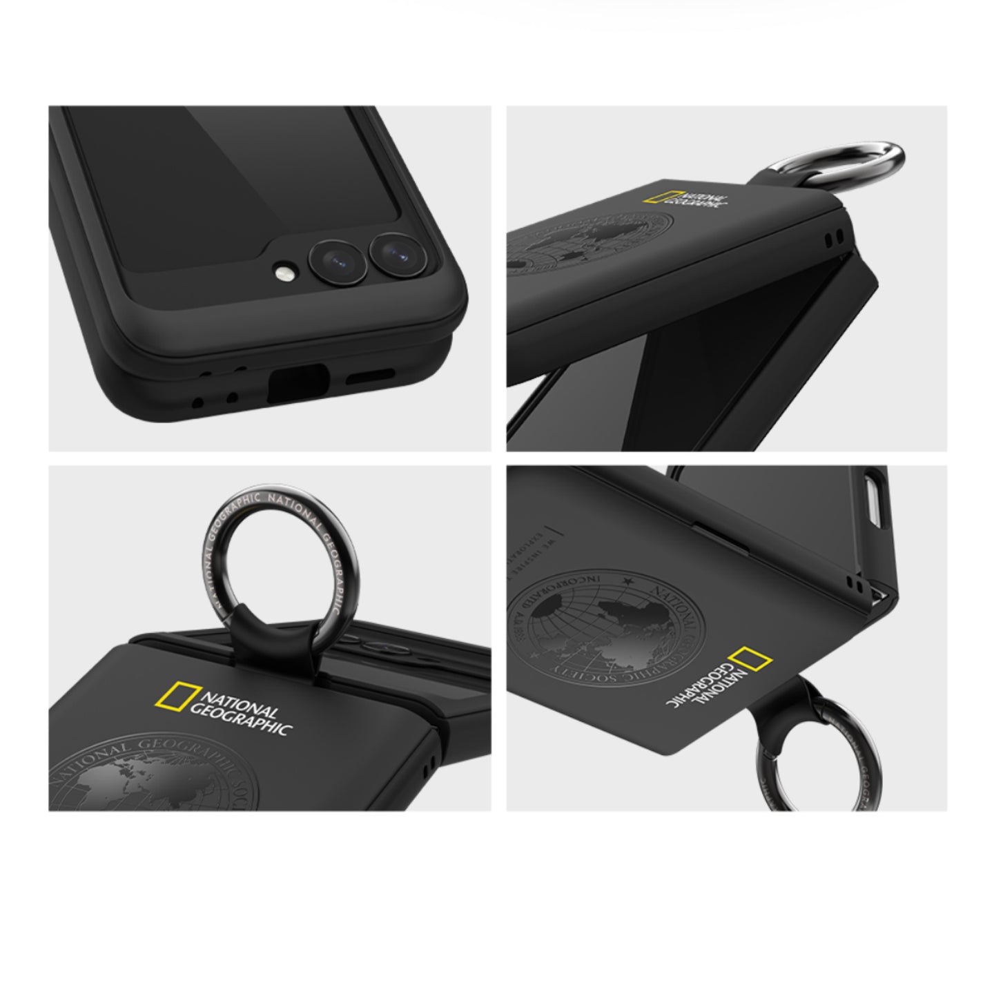 Nat Geo Galaxy Z Flip 6 Back Cover Case | Magnetic Card Door Bumper Case V2 - Global Seal (Black)