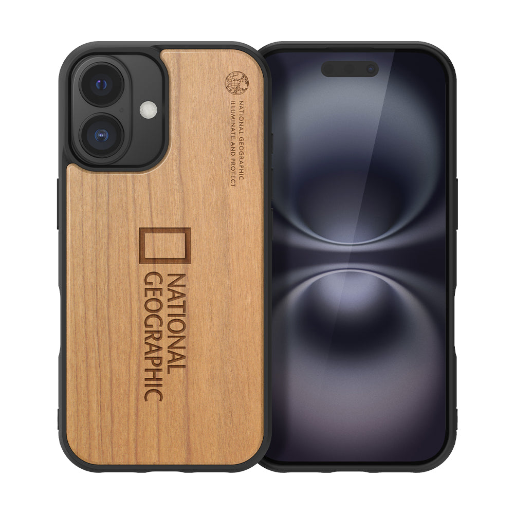 Nat Geo iPhone 16 Plus Back Cover Case | MagSafe Nature Wood - Big Logo