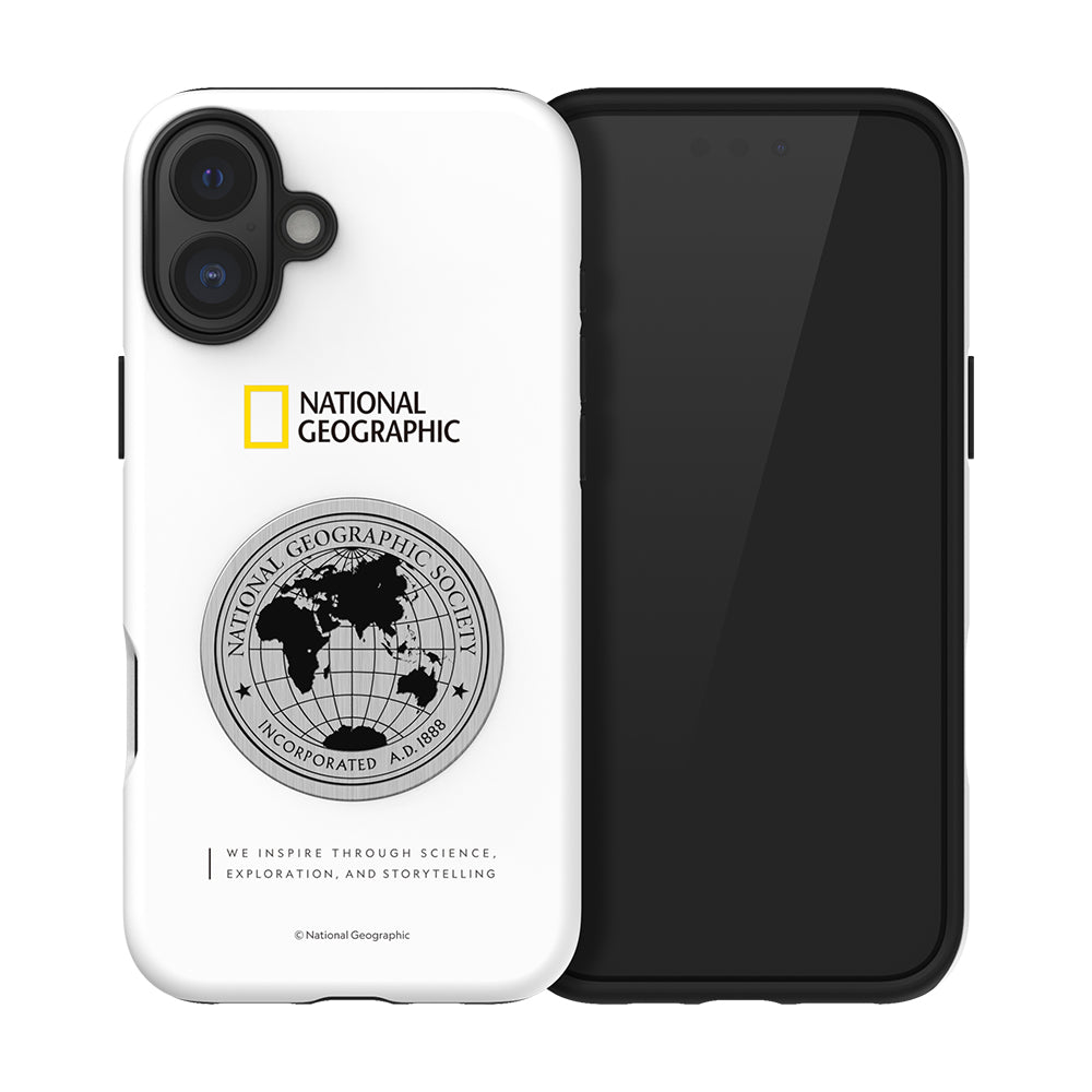Nat Geo iPhone 16 Plus Back Cover Case | Metal Deco Hard Shell - White
