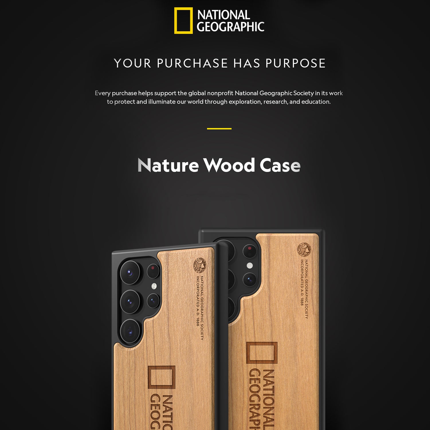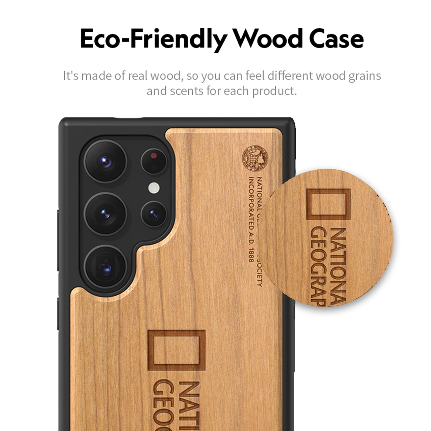 Nat Geo Galaxy S24 Ultra Back Cover Case | Wood Case V3 - Cherrywood (Big Logo)