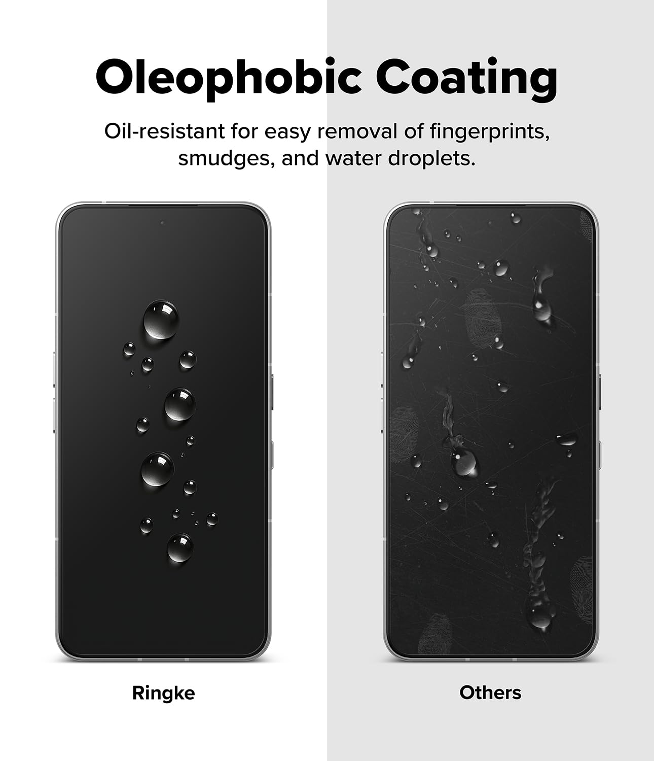 The oleophobic coating is oil-resistant, making it easy to wipe off the build-up of fingerprints, smudges, and moisture from the glass.