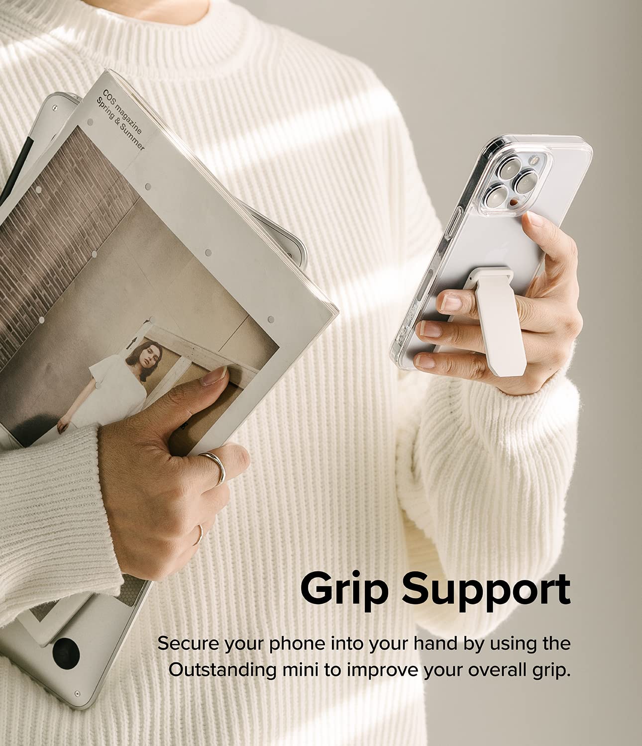 - Universal smartphone kickstand with a lightweight, minimalist design for everyday use.