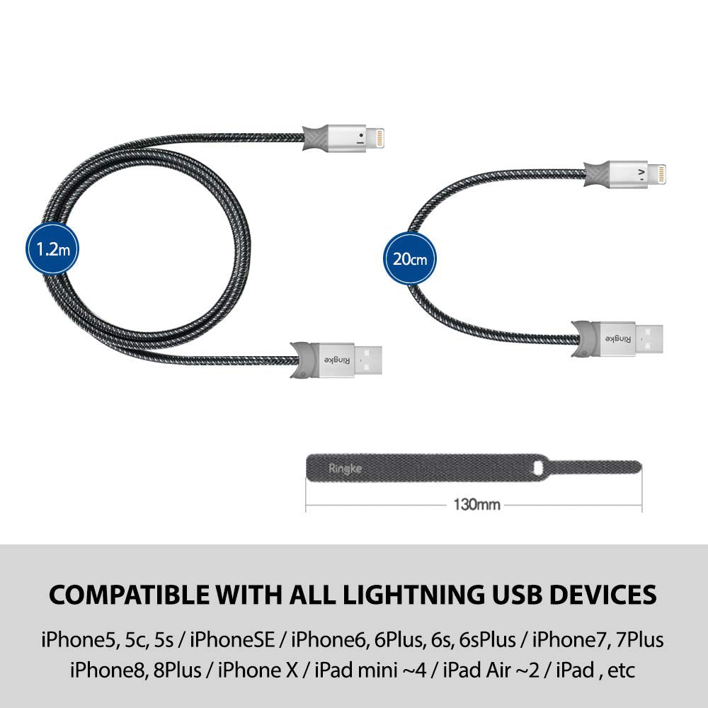 Ringke Lightning Braided Nylon Cable [4 ft] + [0.6 feet] Lightning to USB A Port