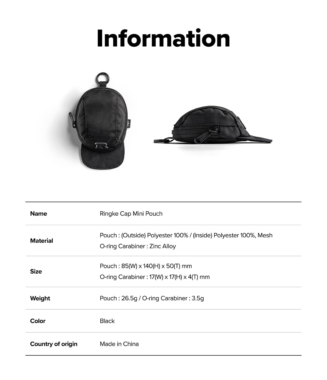 Ringke Cap Mini Pouch Cap-Shaped [Inner Mesh Pocket] - Black