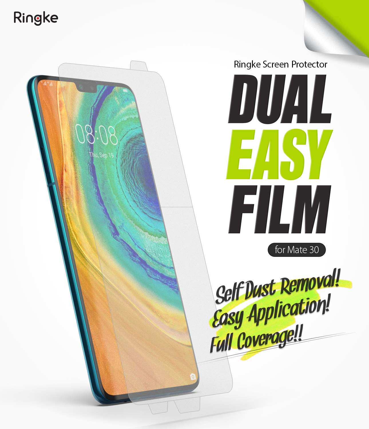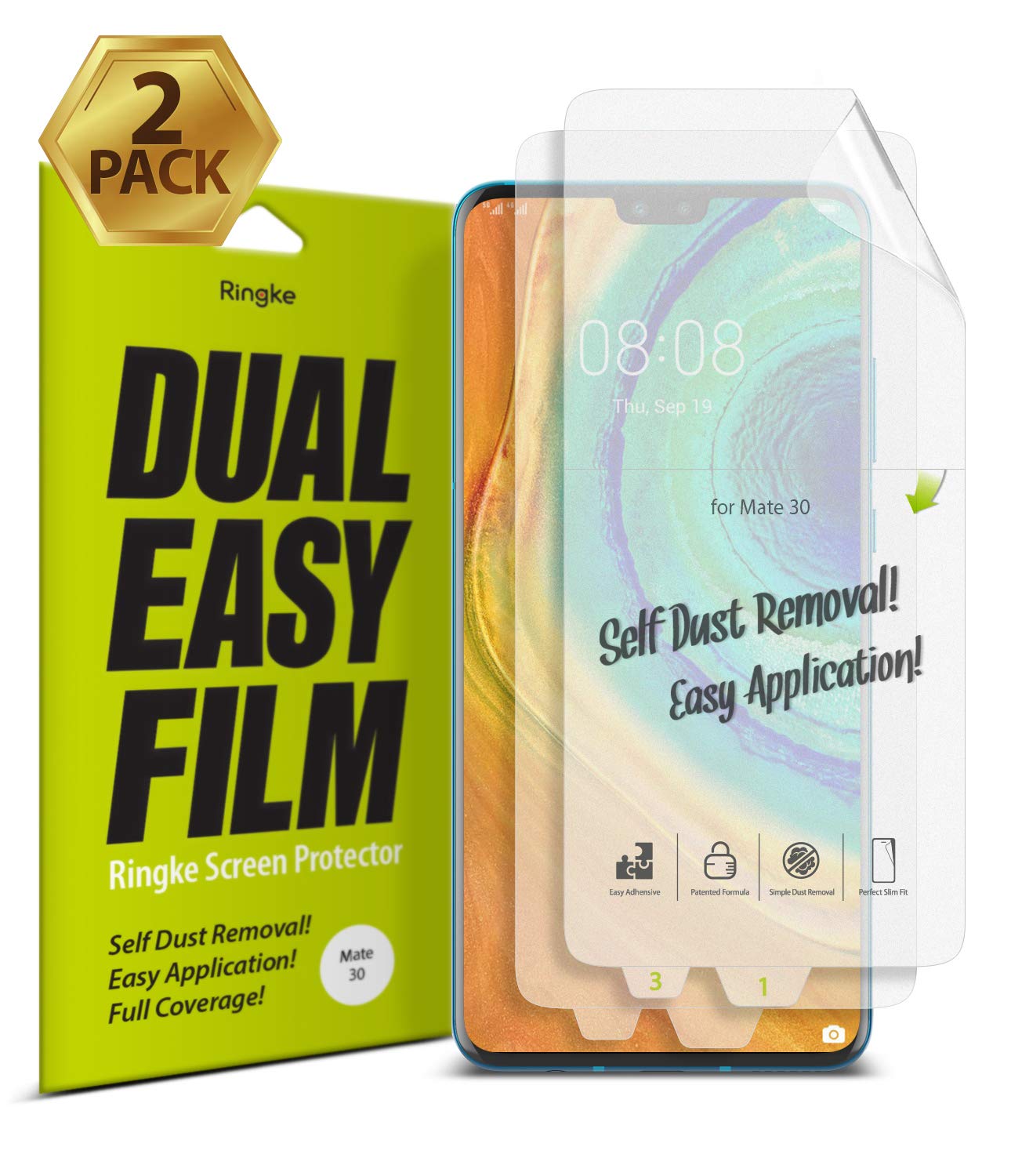 Ringke Dual Easy Film Huawei Mate 30 Screen Protector is fully adhesive from top-to-bottom for a seamless bond. The full adhesion allows the screen protector to tightly adhere onto the phone for genuine touch responsiveness.